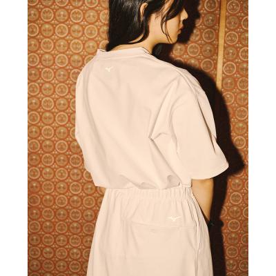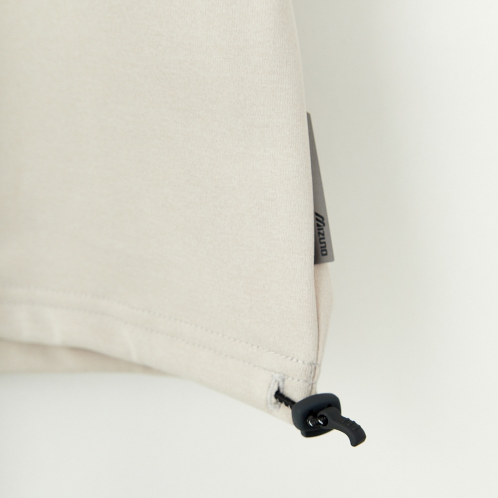■ストレッチ性のあるポリエステル糸を度目を詰めて編み上げたMIZUNOオリジナルの天竺生地を使用し、しっかりとしたシルエットと快適な着心地を実現。
