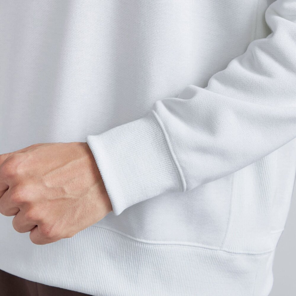 コットンライクなスパンポリエステルを使用したスウェットパーカーで、ポリエステル100%の生地は手軽に洗濯でき、綿に比べて脱水後の乾きが早いイージーケア性も魅力です。