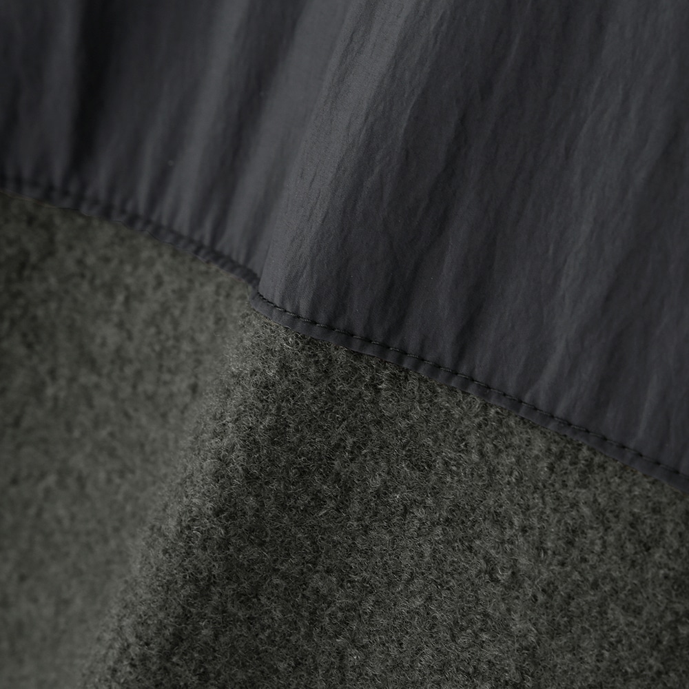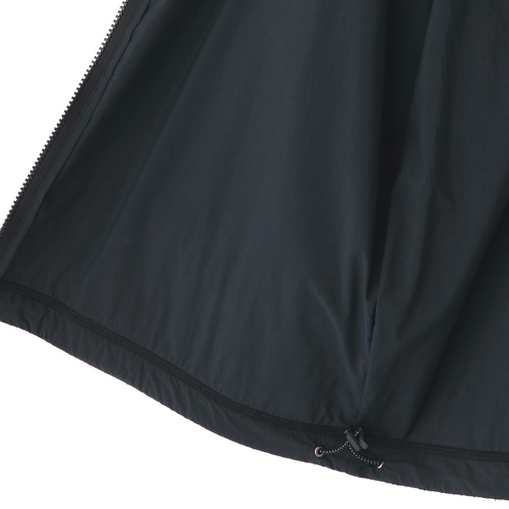 外襟とショルダーには、コットンのような風合いと耐久撥水性を備えたPFASフリーのタスランナイロンを使用。