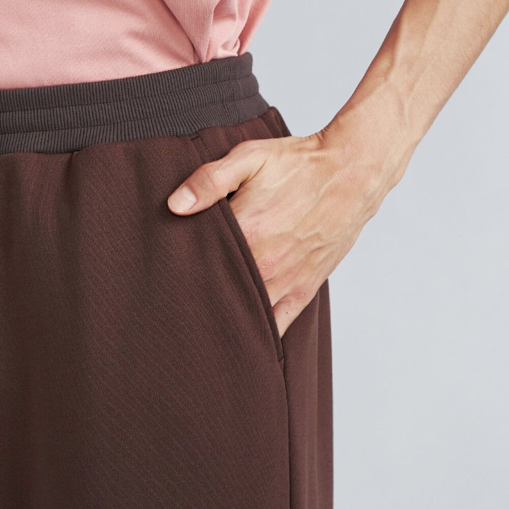 コットンライクなスパンポリエステルを使用したスウェットパンツで、ポリエステル100%の生地は手軽に洗濯でき、綿に比べて脱水後の乾きが早いイージーケア性も魅力です。