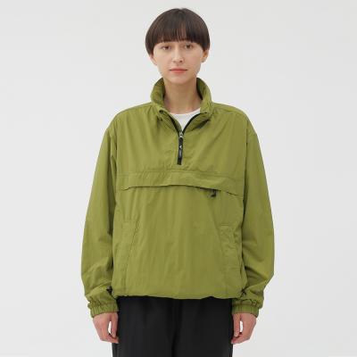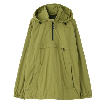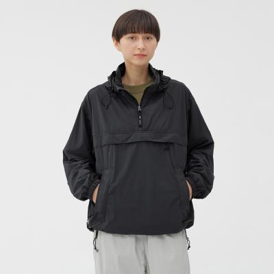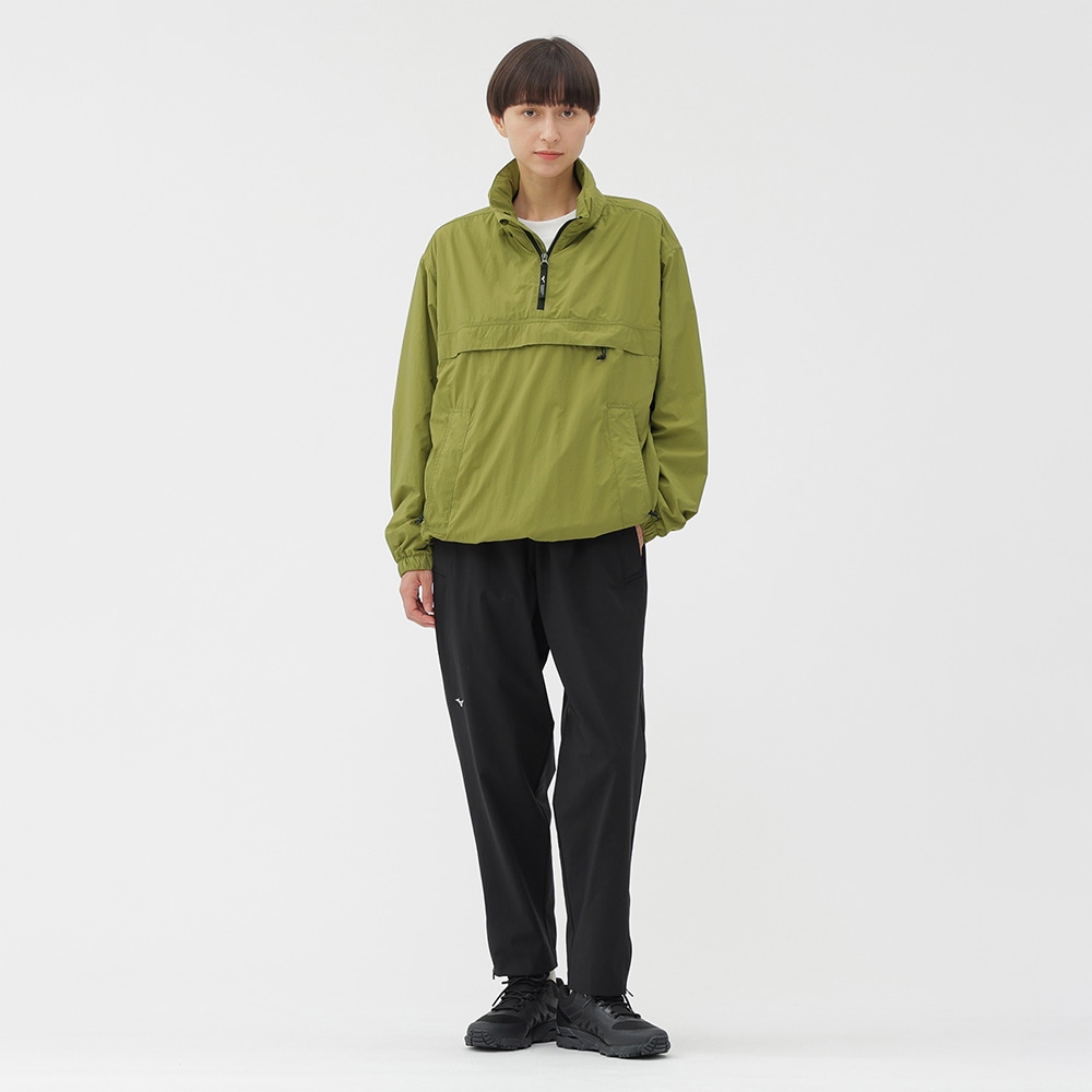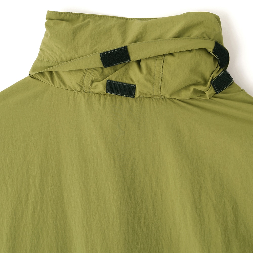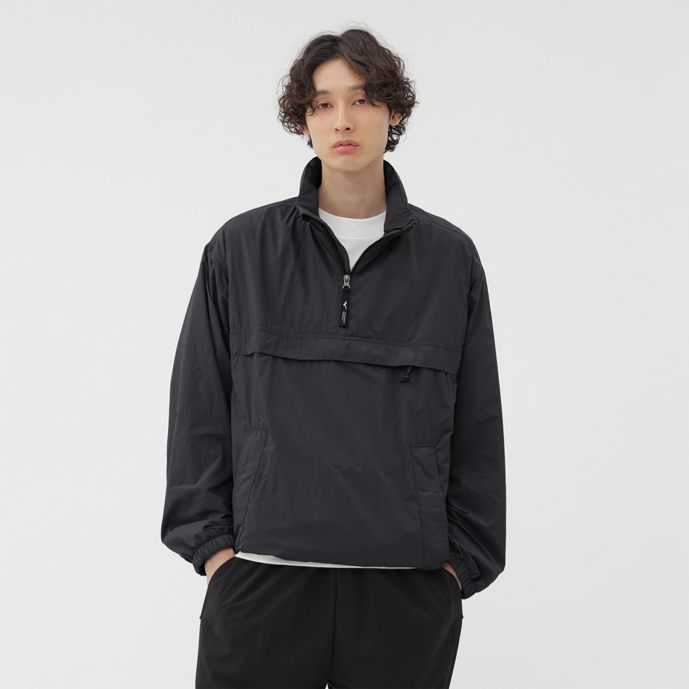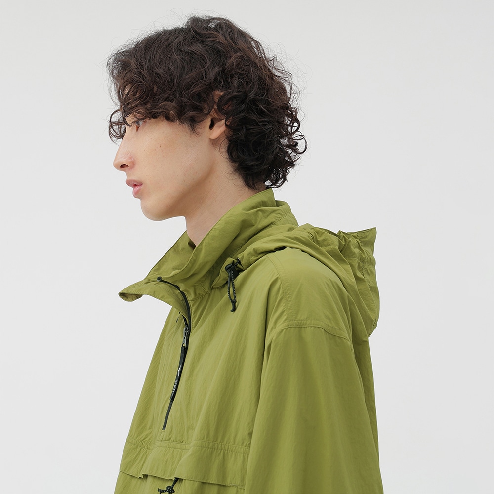 カンガルーポケットや収納可能なフードを備えた、アクティブな仕様のアノラックスタイルのブルゾン。