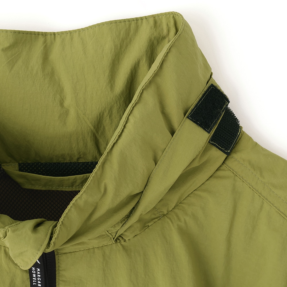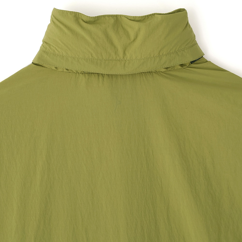強度を保たせた軽量素材で、コットンのような自然な風合いと、高い耐久撥水性を持つPFASフリーでリサイクル素材のタスランナイロンを使用。