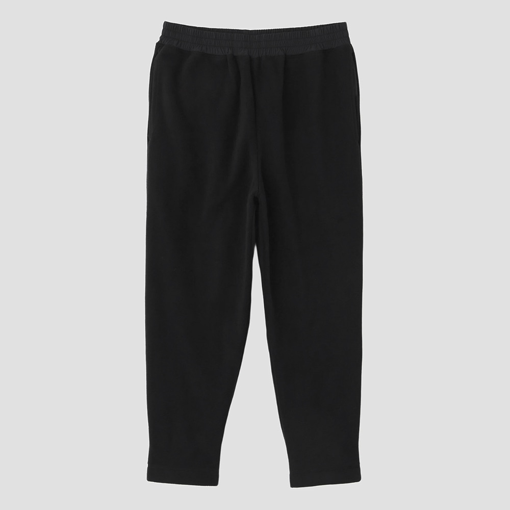 世界初の合繊フリースを生み出したPOLARTECのリサイクルフリースを使用。裾は後ろのみリブ仕様で、フリース素材だが細身でスポーティーな印象のテーパードシルエットトラウザーズ。