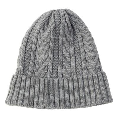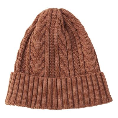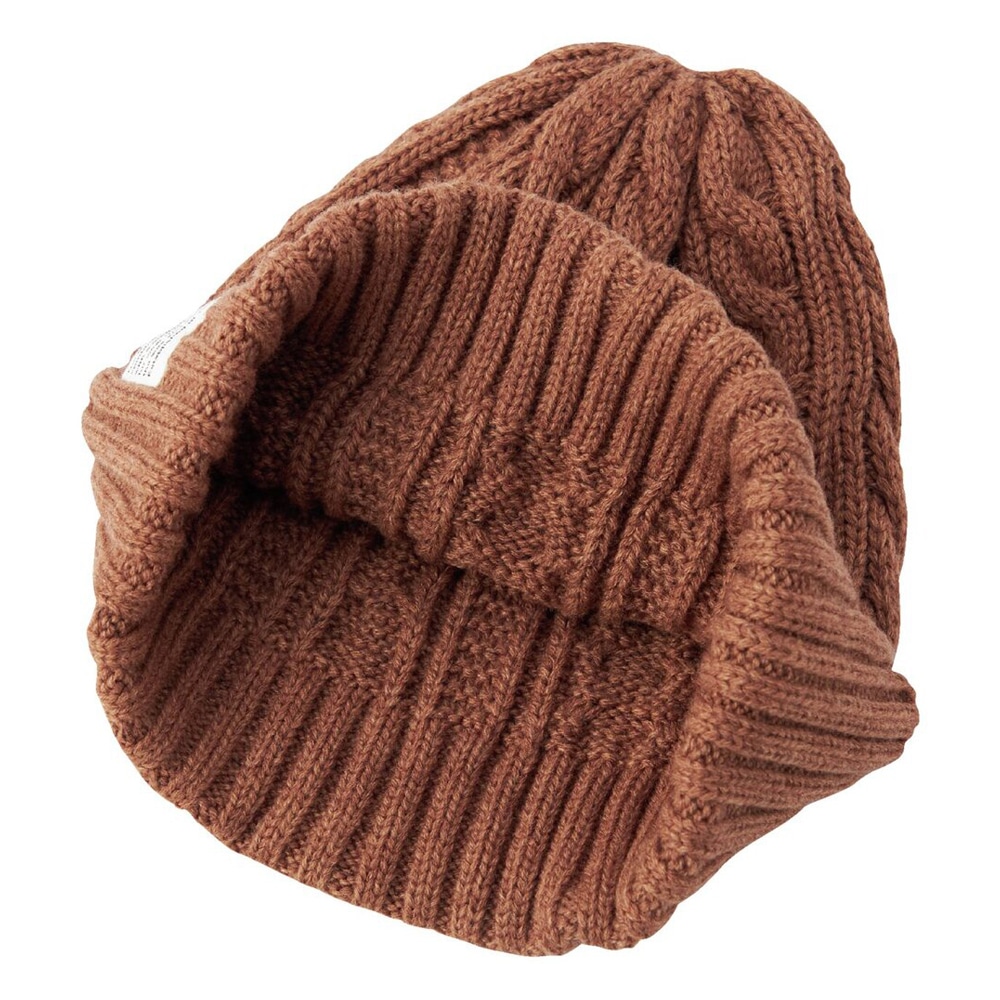 アクリル×ウール×ブレスサーモを使った、ケーブル編みニットキャップ。