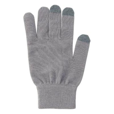 インナーとしても1枚使いでも使用でき、親指・人差し指・中指の先に導電糸を使ったタッチパネル対応仕様の手袋です。