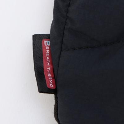 | 素材 | 表地、本体:ナイロン100%、合成皮革 カフス部:ポリエステル100% 裏地:ポリエステル、合成繊維(ブレスサーモ)、ポリエステル100% 中綿:ポリエステル100% |