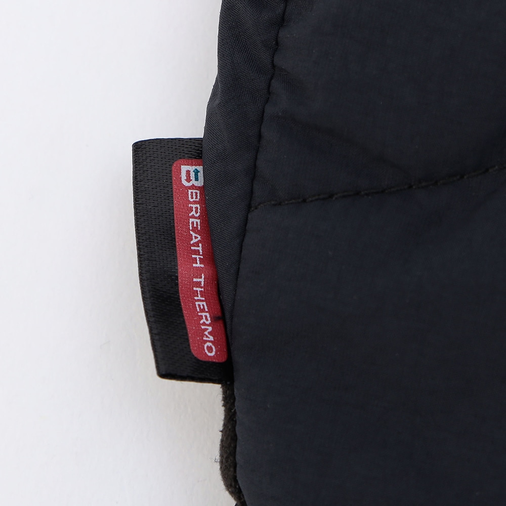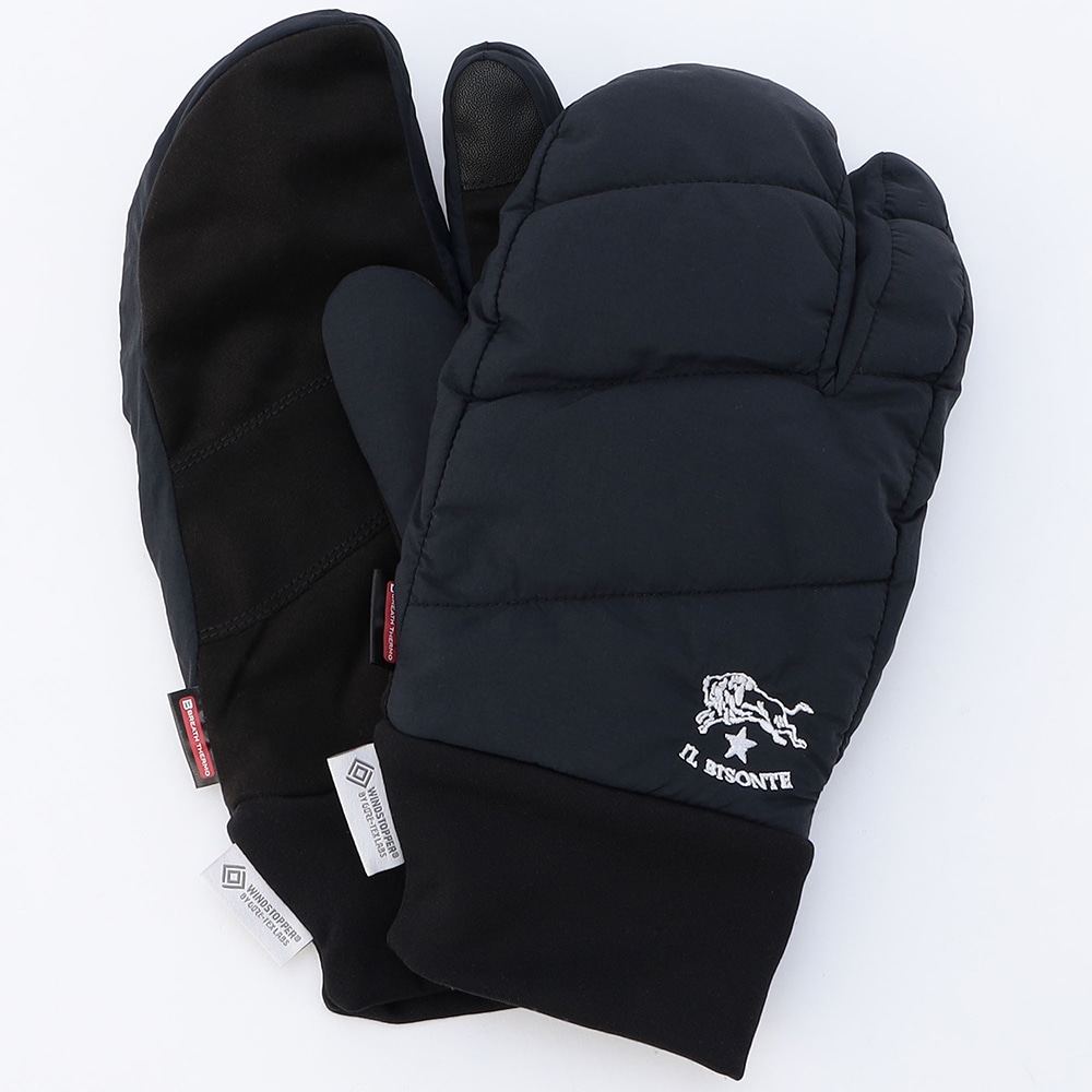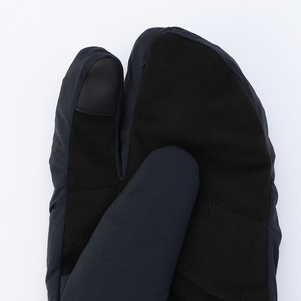 表地にタスランナイロンを使用し、WINDSTOPPER BY GORE-TEX LABSの裏地×中綿×リフレクションギア×ブレスサーモを重ね合わせた機能的で温かいミトン。
