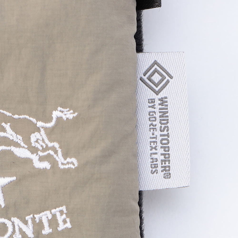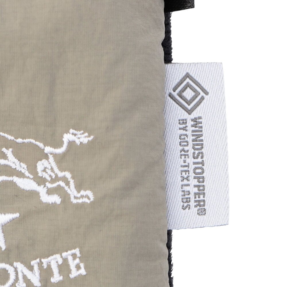 使いやすい3フィンガータイプのミトンは、親指・人差し指の指先にタッチパネルの操作が可能なように導電性のある素材を使用しています。こちらも表地には軽量のタスランナイロンを使用し、マフラー同様にWINDSTOPPER BY GORE-TEX LABS、ミズノ独自の温かい機能を生かした防寒性とデザイン性を両立させた特別仕様です。