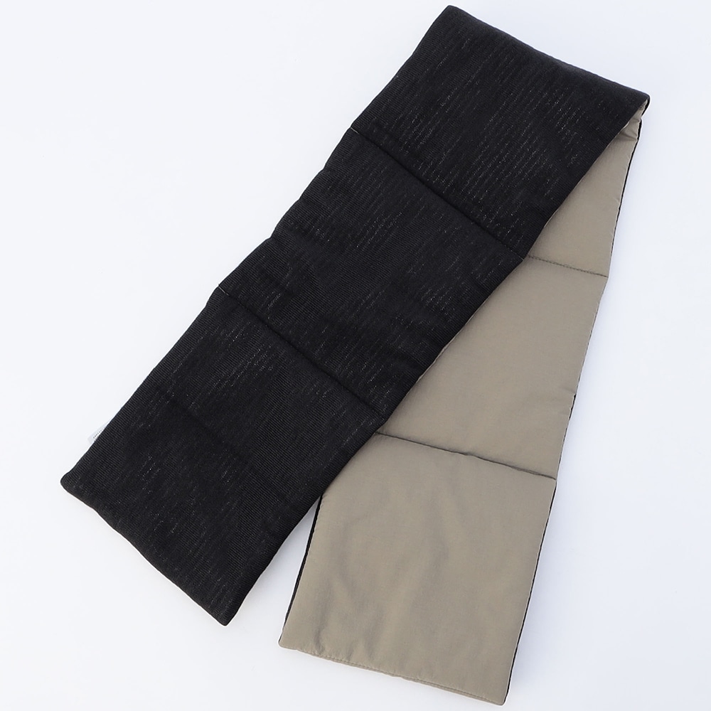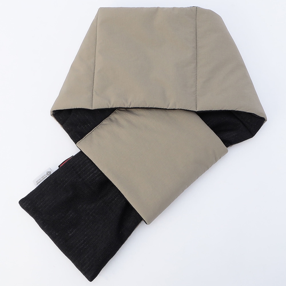 表地にタスランナイロンを使用し、WINDSTOPPER BY GORE-TEX LABSの裏地×中綿×リフレクションギア×ブレスサーモを重ね合わせた機能的で温かいマフラー。