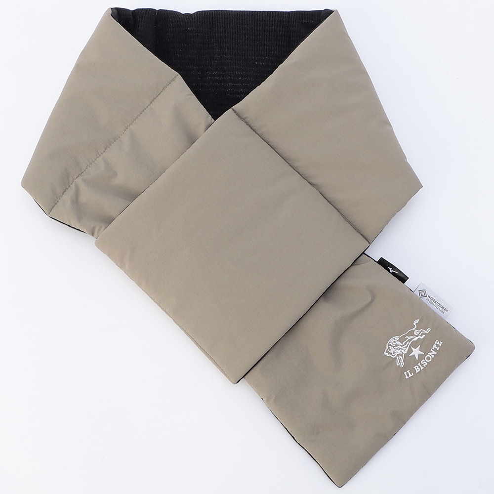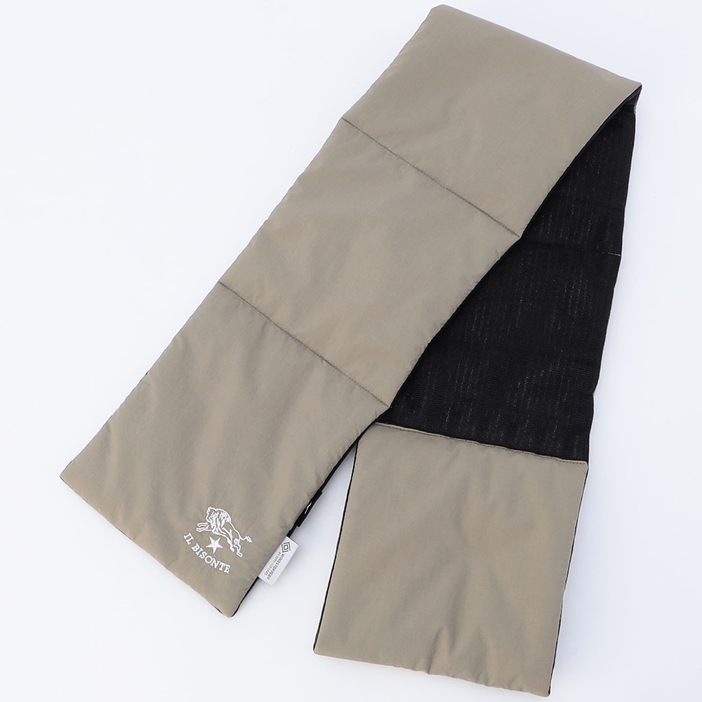 バイソンロゴ刺繍がポイントのマフラーは、表地に軽量のタスランナイロンを使用し、