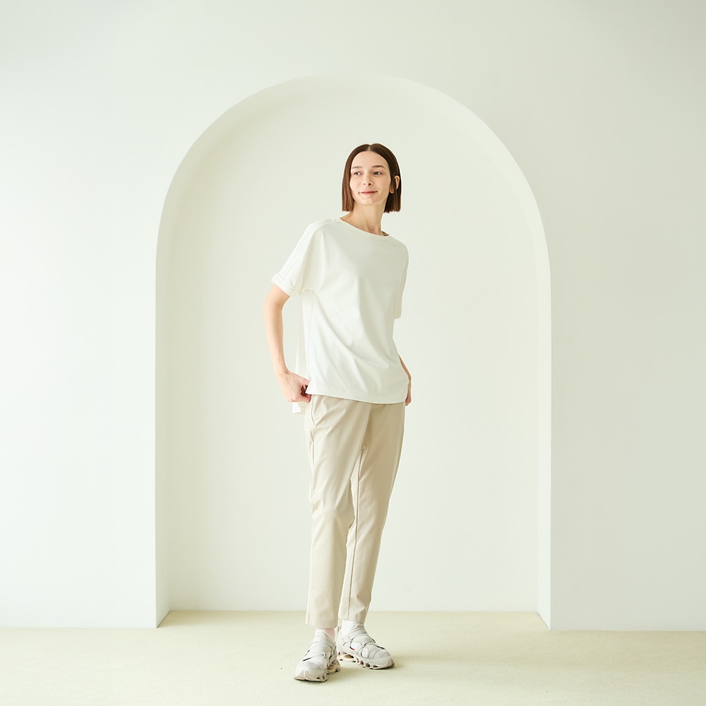 ■程良い厚みのある素材とゆとりあるシルエットで、安心感のある着用感。