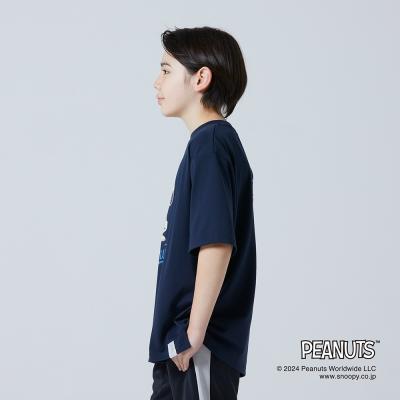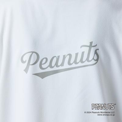 前身には、ガッツポーズをキメたスーパーヒーロースヌーピーのプリント、背中にはPEANUTSロゴのプリント入り。