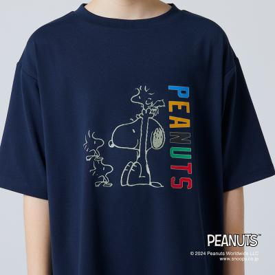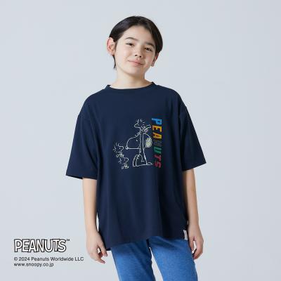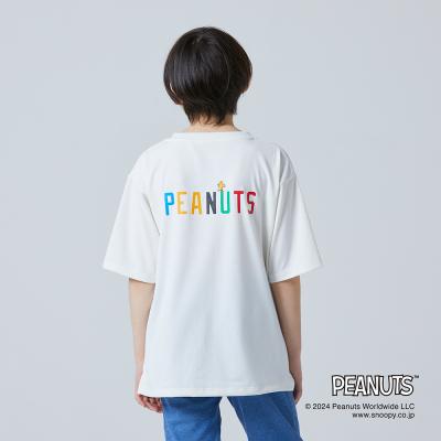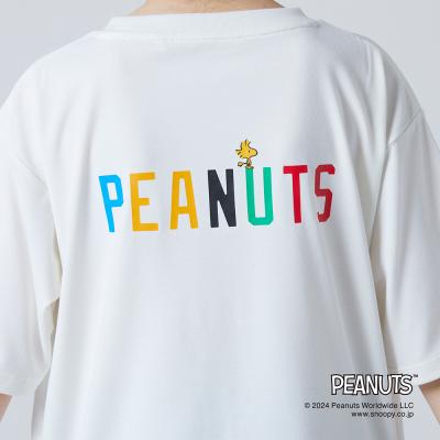 カラーによって前身のグラフィックデザインは異なりますが、共通で5色で彩られたPEANUTSロゴのプリント入り。