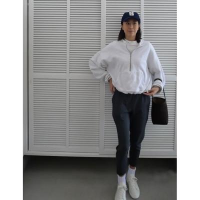 ■足首が見える9分丈でスニーカーとの相性も良い。