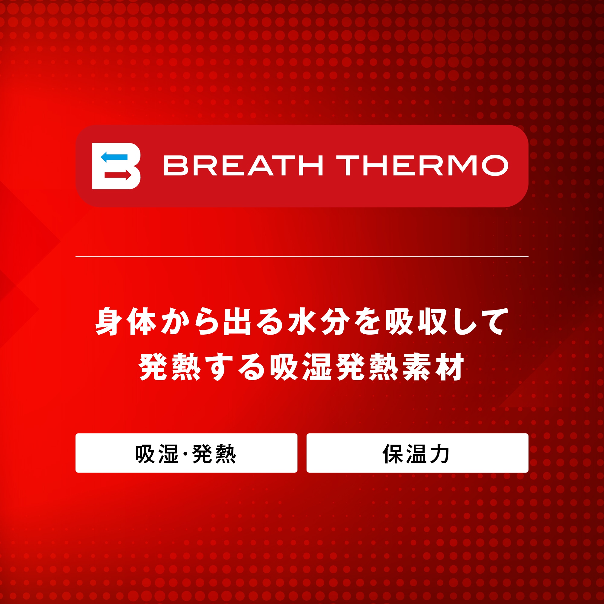 ■ブレスサーモは人体から発生する水分を吸収し発熱するので、体から出るの湿気を吸い衣服内をドライに保ちながら、保温性を高める特徴があります。
