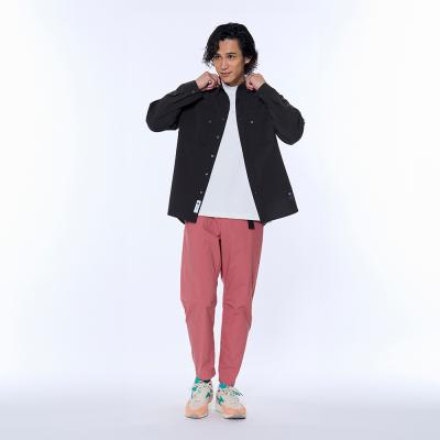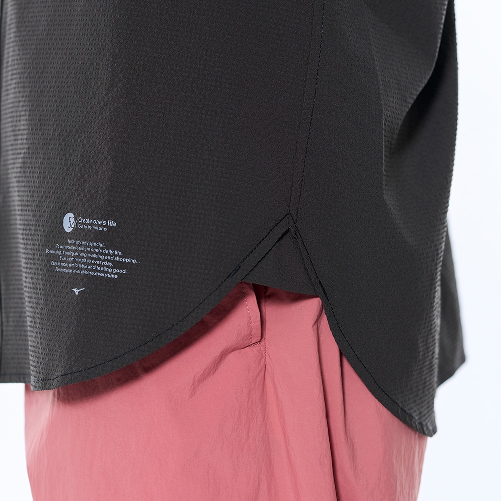 ■夏場、汗をかくと生地が肌に張り付く事がありますが、シアサッカー素材は凹凸があり肌への接点が少ない為、サラサラした感覚が得られる素材です。また伸縮性もあり、日常からアウトドアシーンに便利に使えるアイテムです。