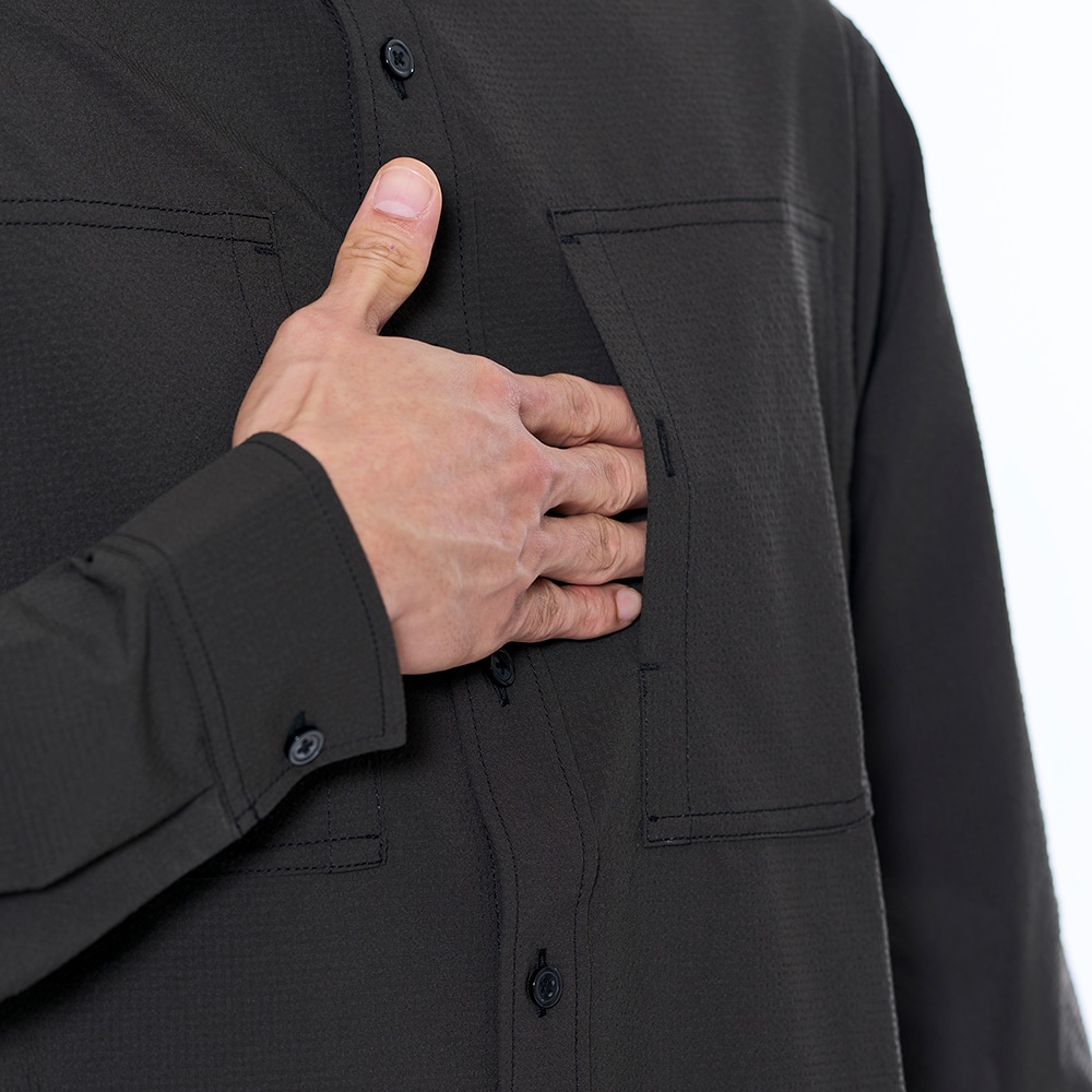 ■両胸に使いやすい縦切りのパッチポケット付き。