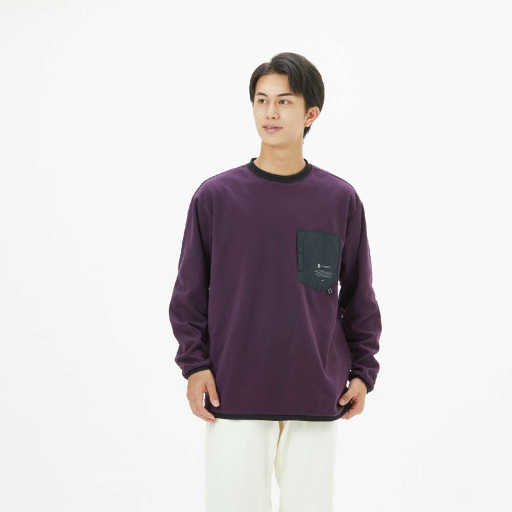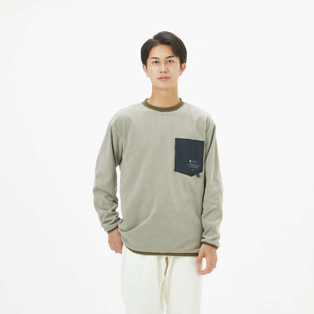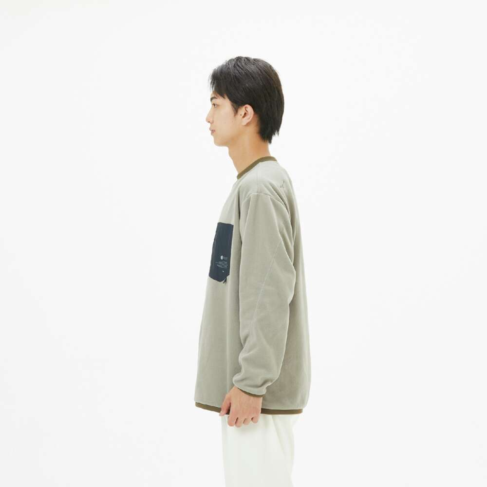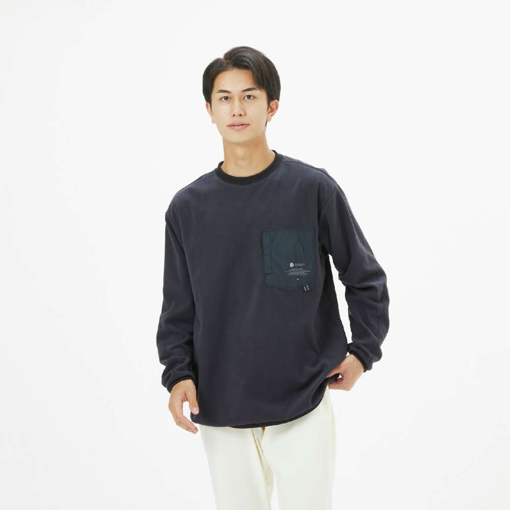 ■左胸に布帛のポケットをあしらったポーラテックマイクロフリース素材のトレーナー。