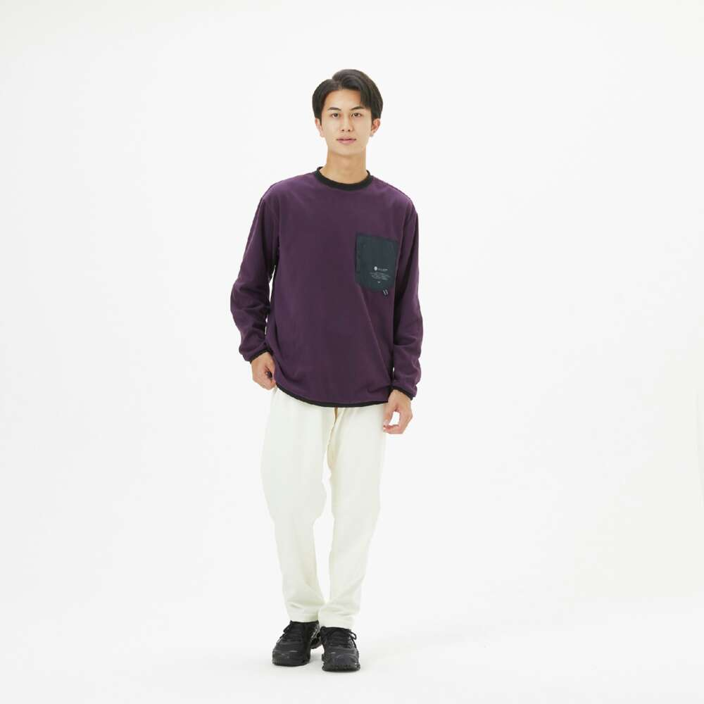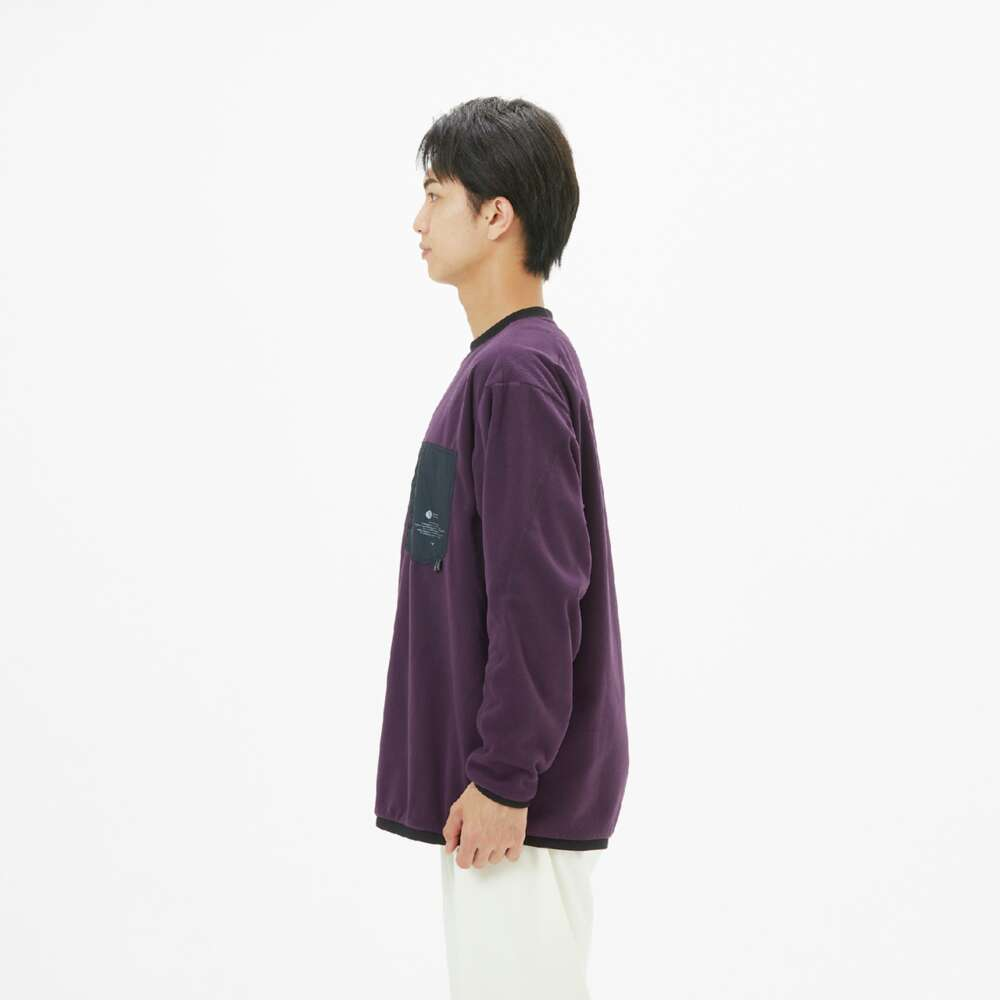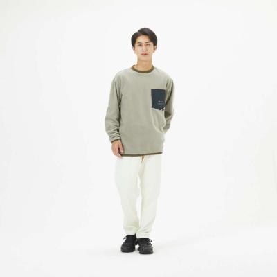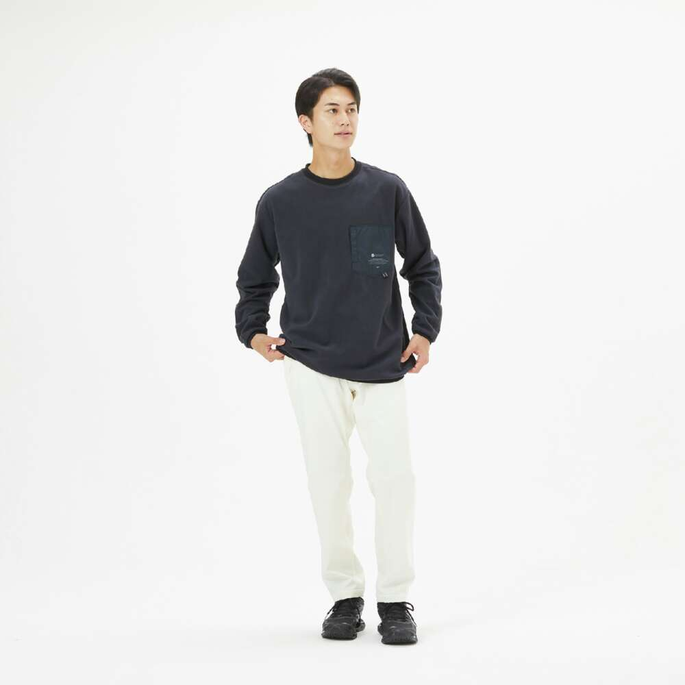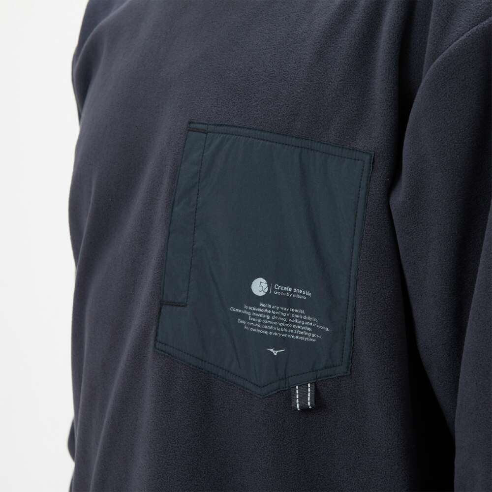 ■左胸に布帛のポケットをあしらったポーラテックマイクロフリース素材のトレーナー。