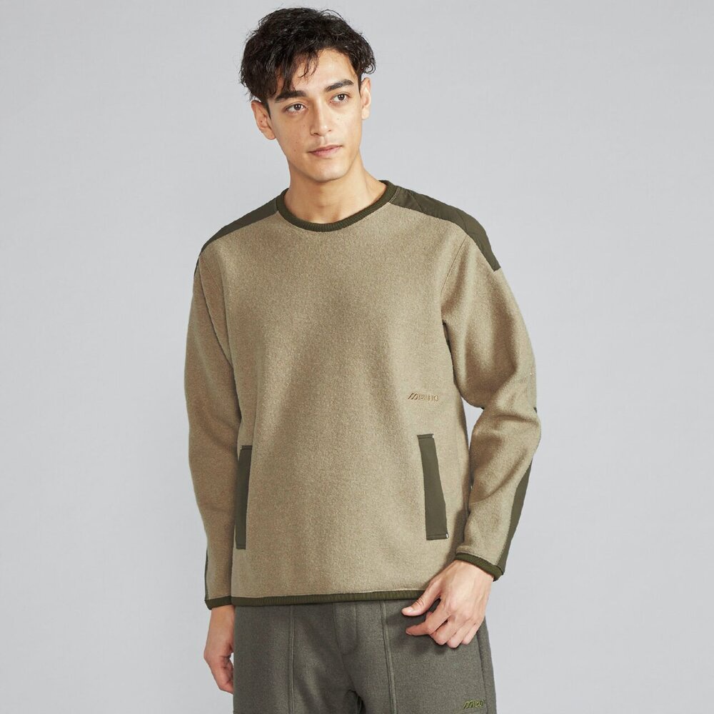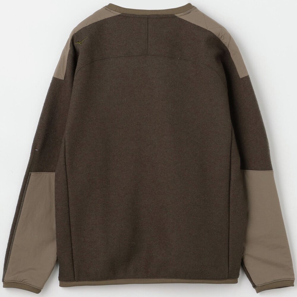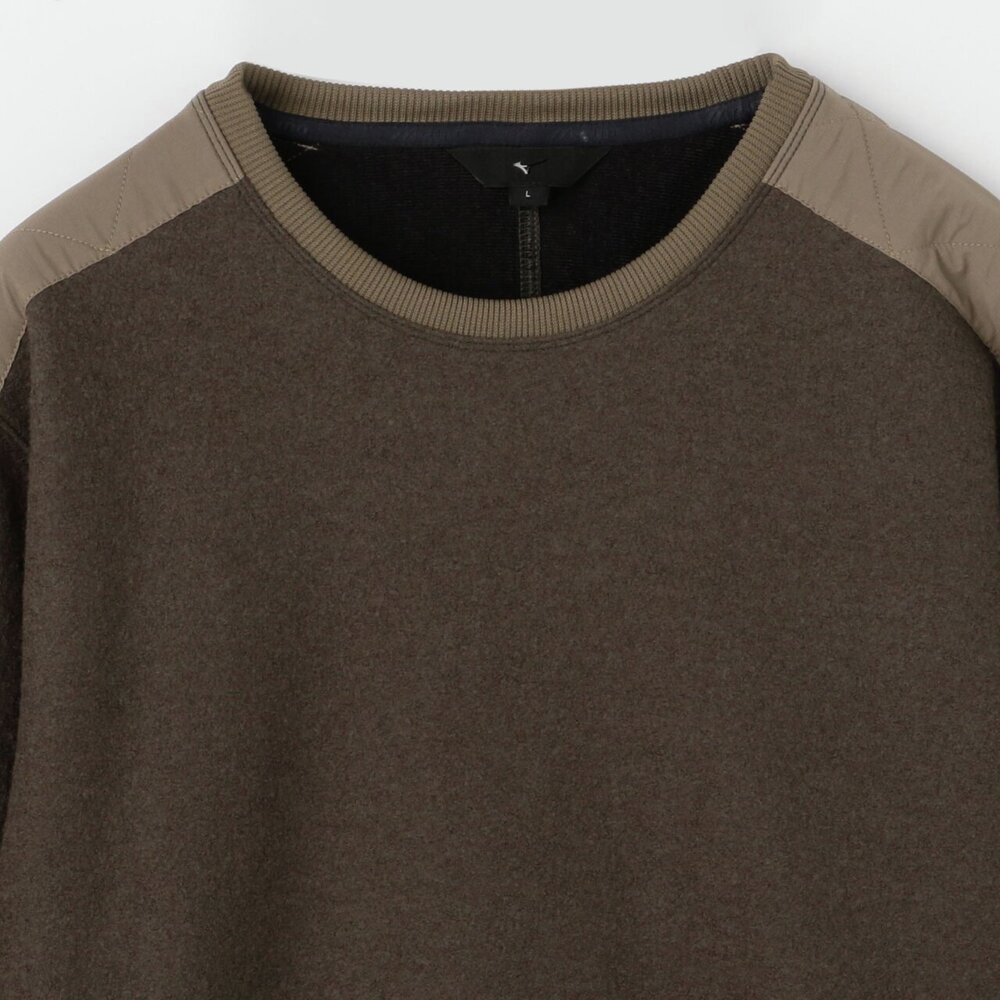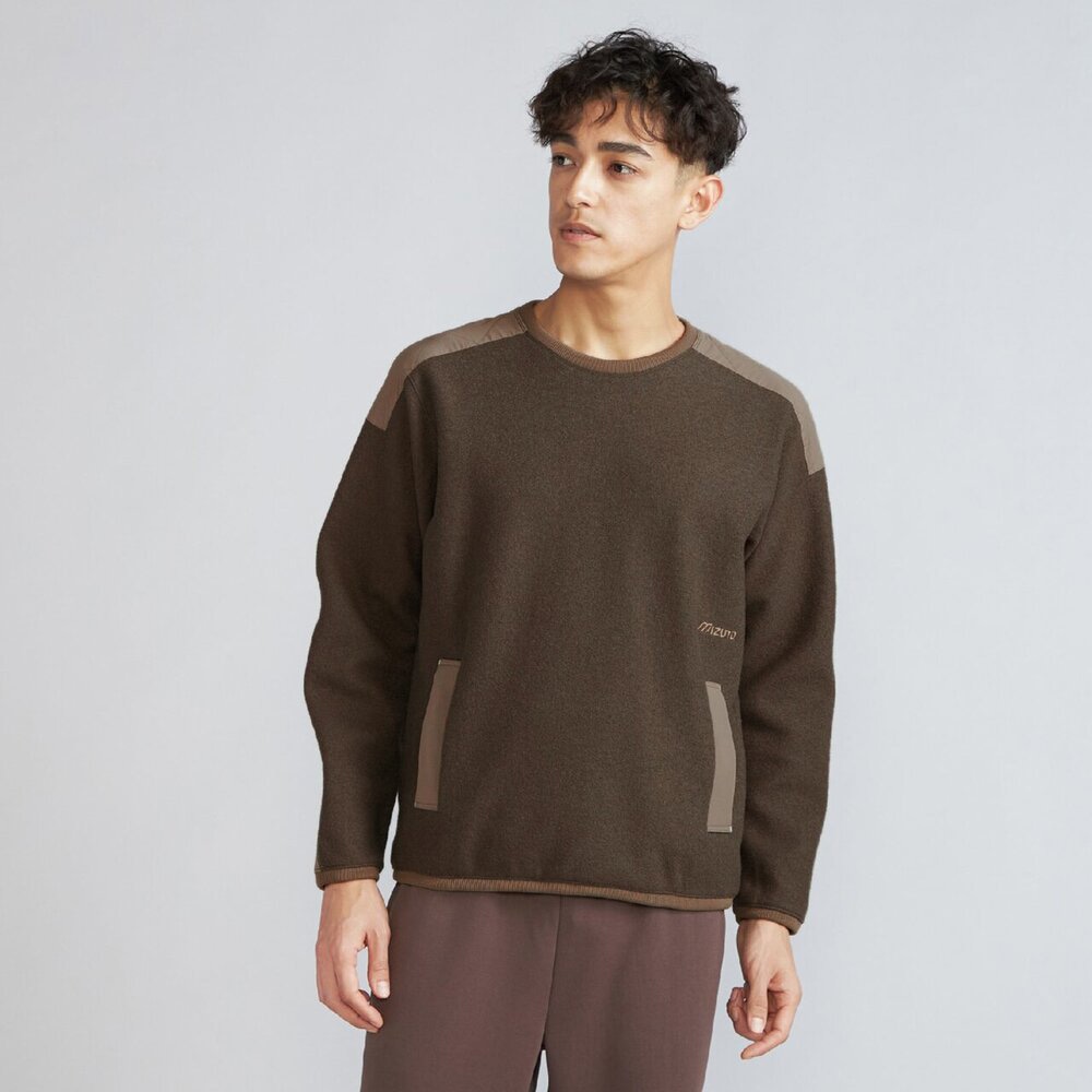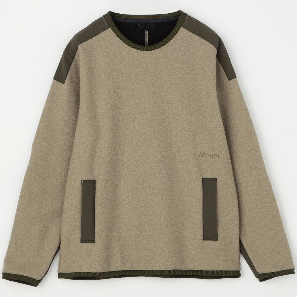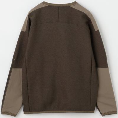 擦れて毛玉になりやすい腰ポケットや肩には布帛を使用した少しレトロ感のあるアウトドアカジュアルテイストのデザインで、セーター代わりに着用できるアイテムです。