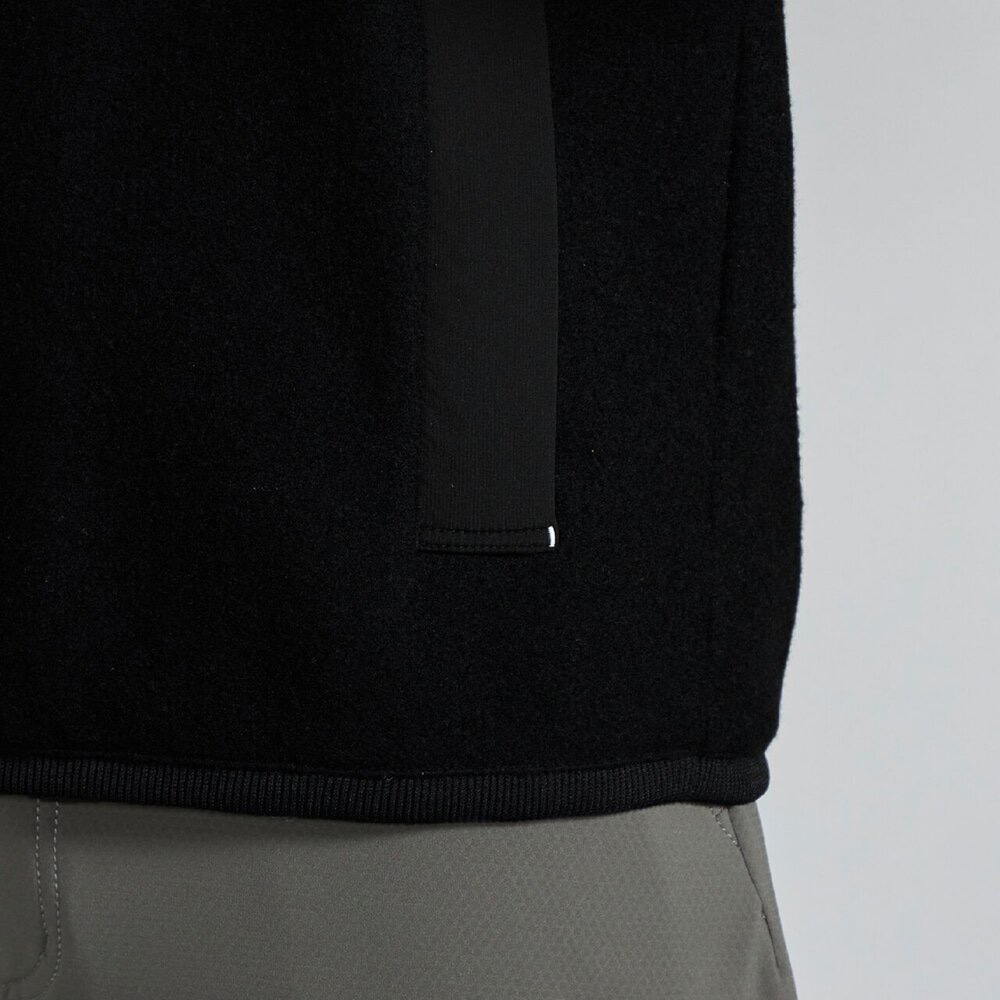 | 素材 | 本体:毛65%、ナイロン35%、布帛部:ナイロン88%、ポリウレタン12% 後身頃上部裏:ポリエステル94%、合成繊維(ブレスサーモ)6% フライス:ポリエステル98%、ポリウレタン2% |