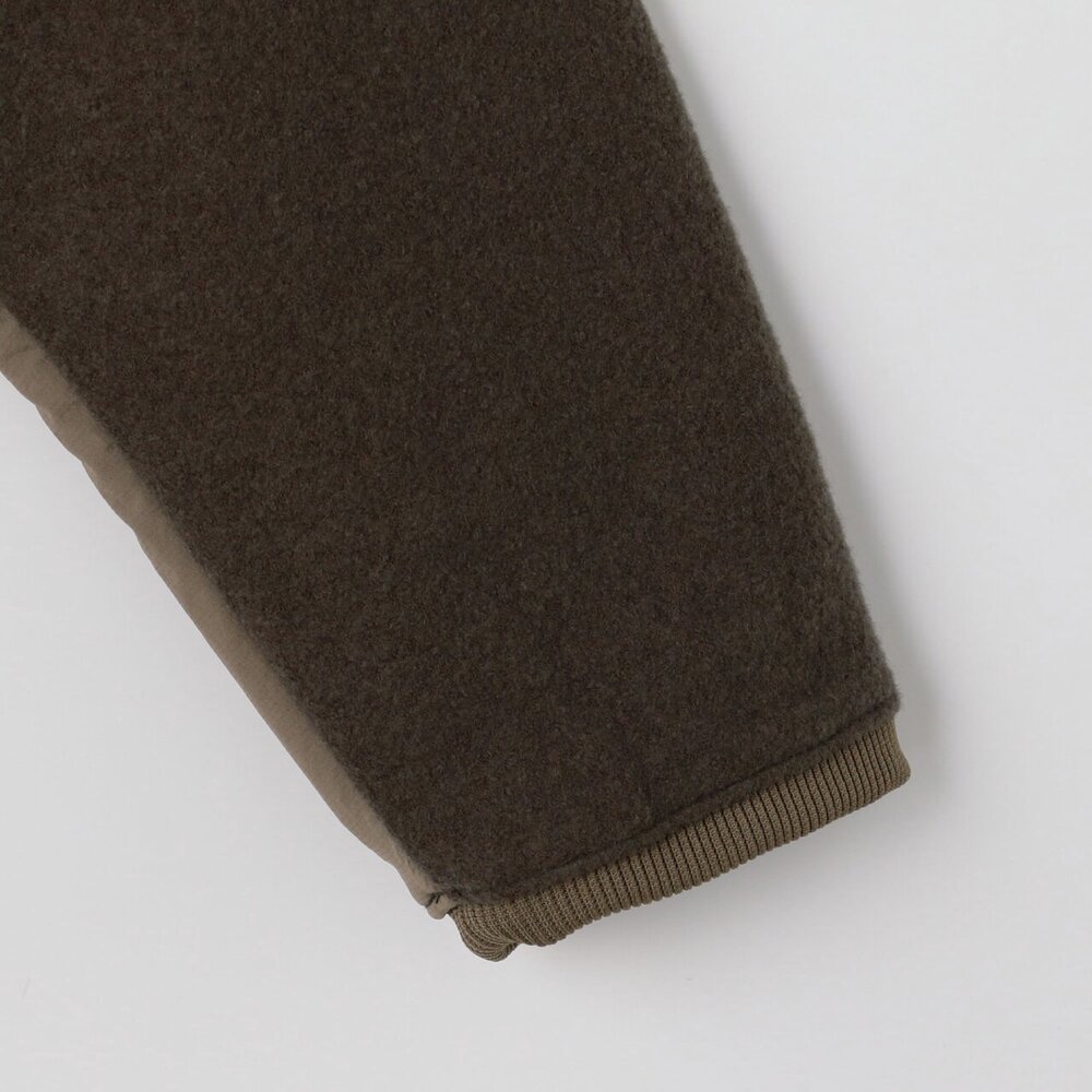 ■表地はウールとナイロンを交編し縮絨をかけた膨らみ感のある圧縮ニットを使用。