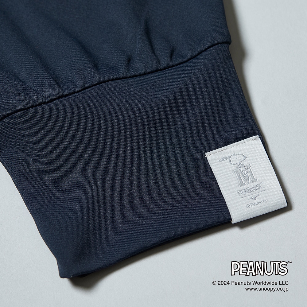 UPF50+のUVカット機能で、夏の紫外線からお肌を守ります。左ももの刺繍はMIZUNOのMとSNOOPYが合わさったオリジナルロゴになっています。