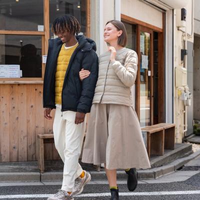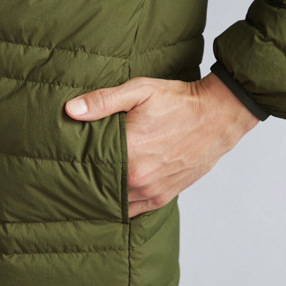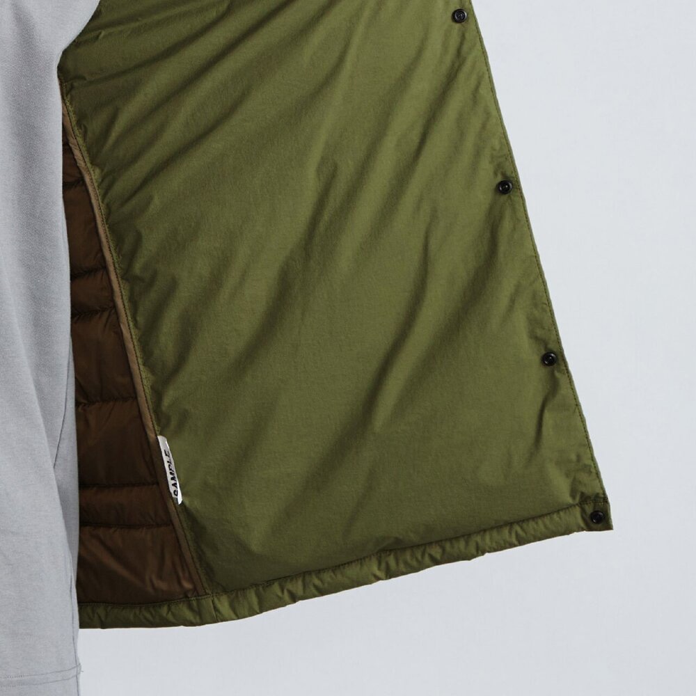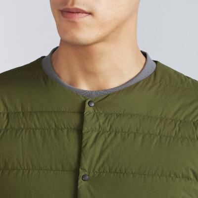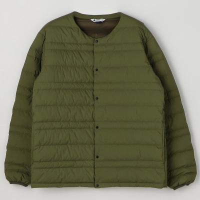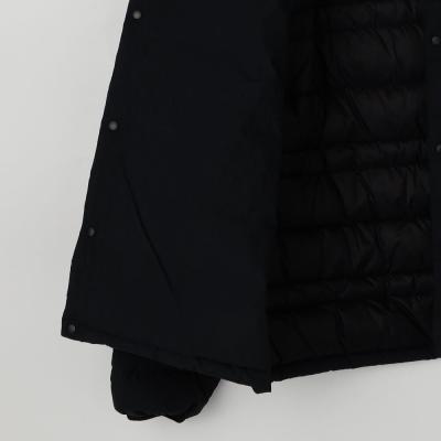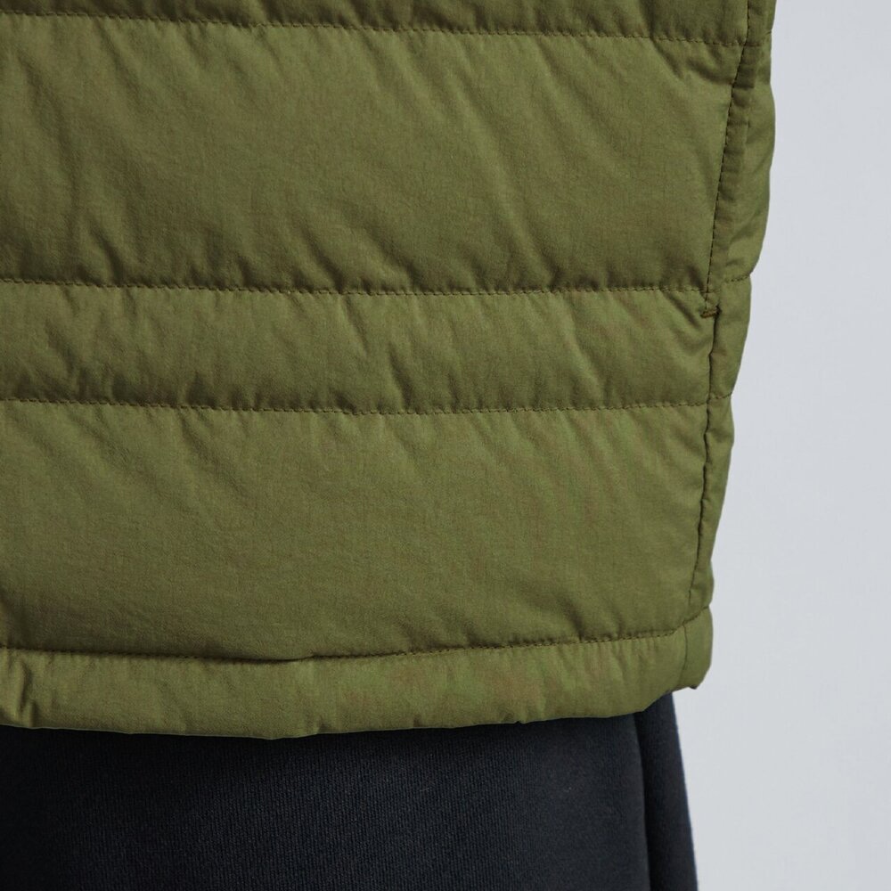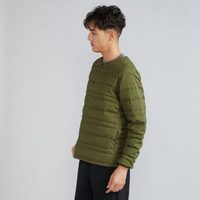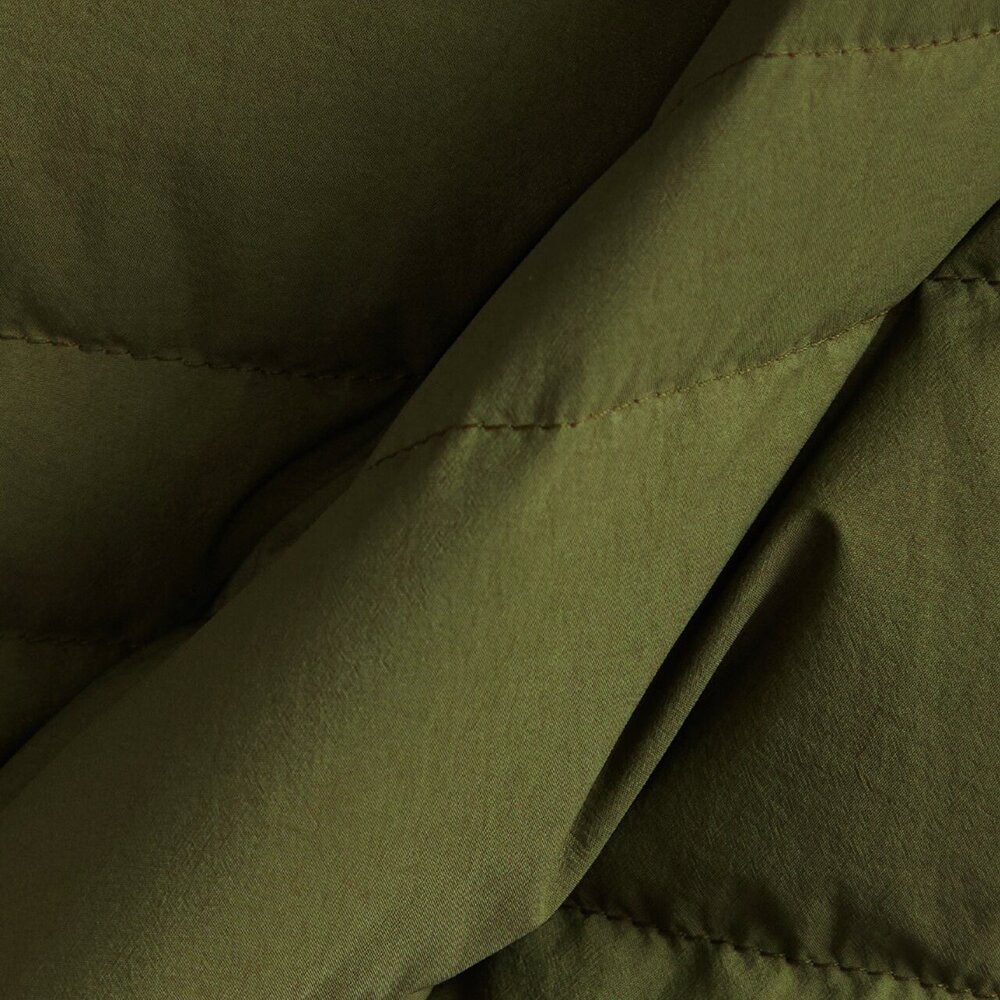 素材 | 表地:ナイロン100% 裏地:ナイロン100% 中綿:ダウン90%、フェザー10% 後身頃芯地:合成繊維(ブレスサーモ)65%、ナイロン35% バインダー:ポリエステル79%、ナイロン16%、ポリウレタン5% |