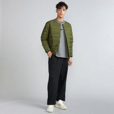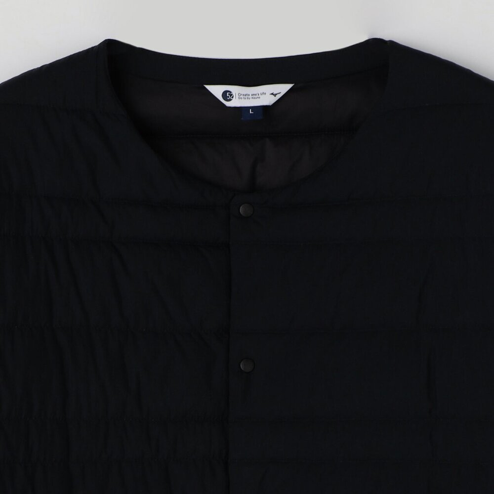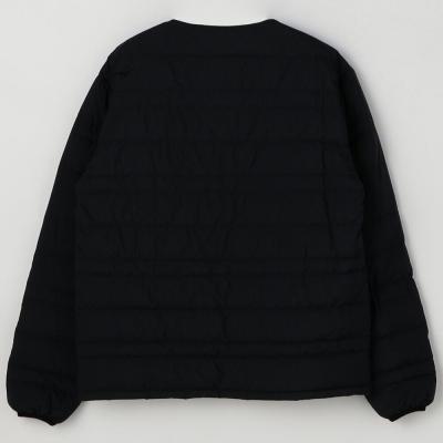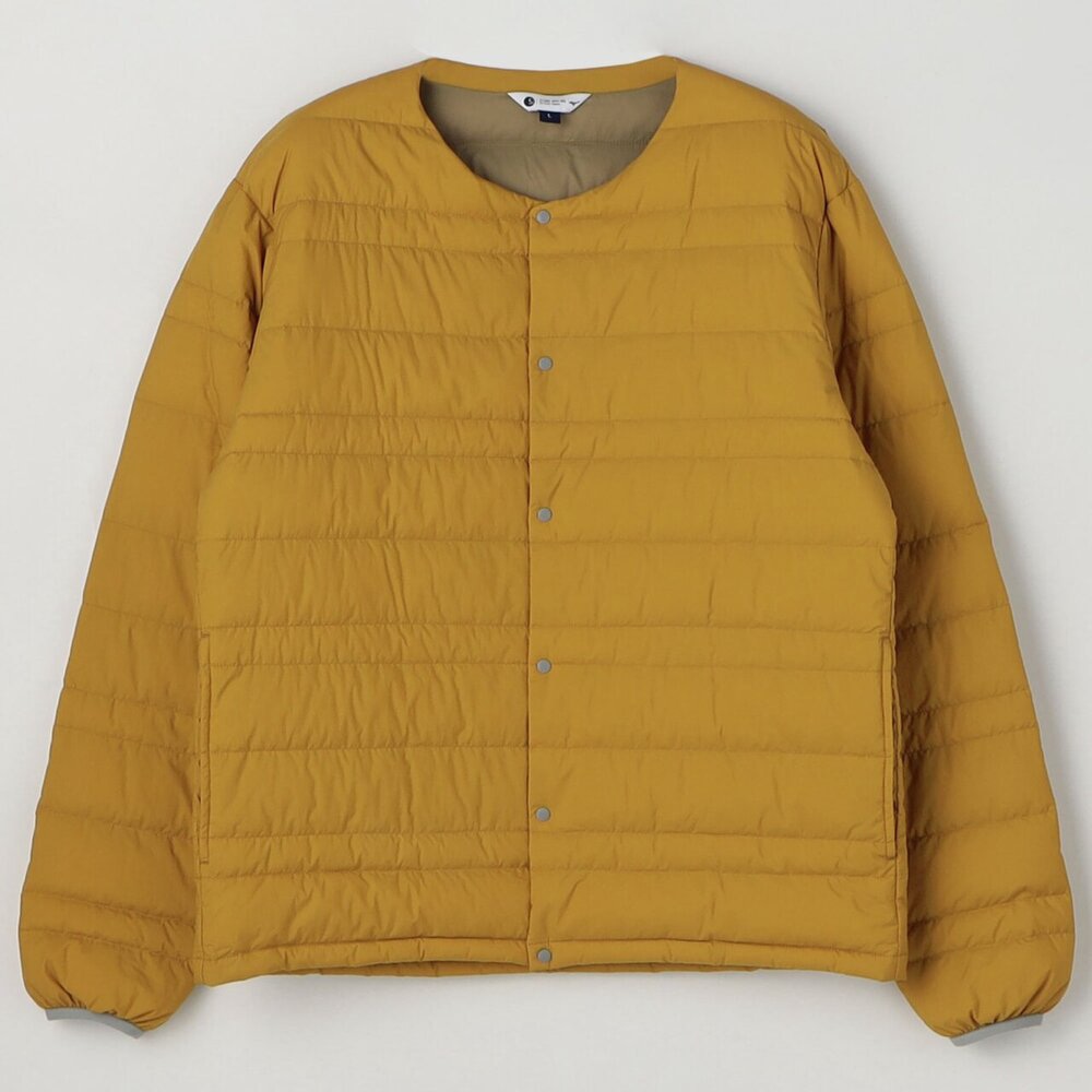 ノーカラーなので重ね着もしやすく、マフラーやネックウォーマーとも合わせやすいデザインです。
