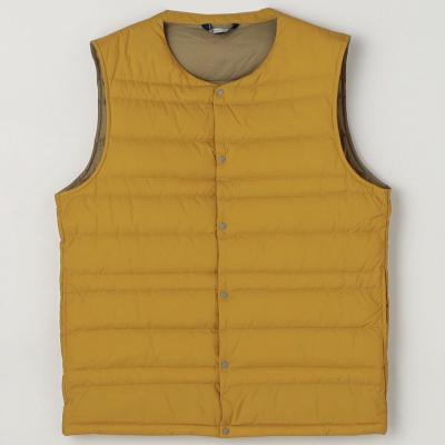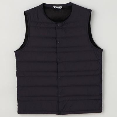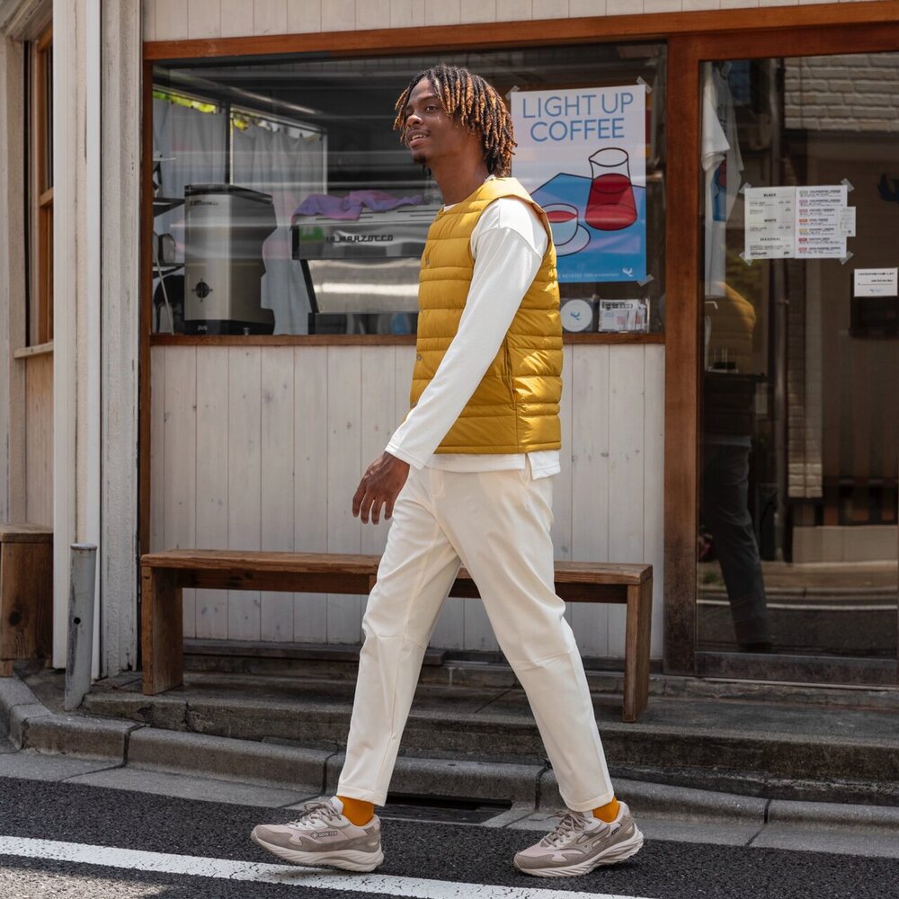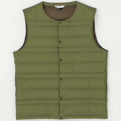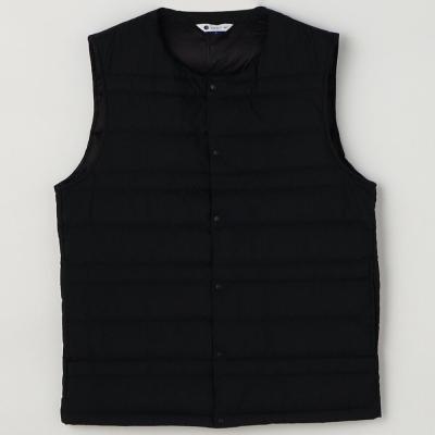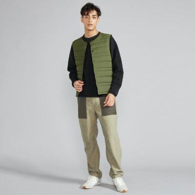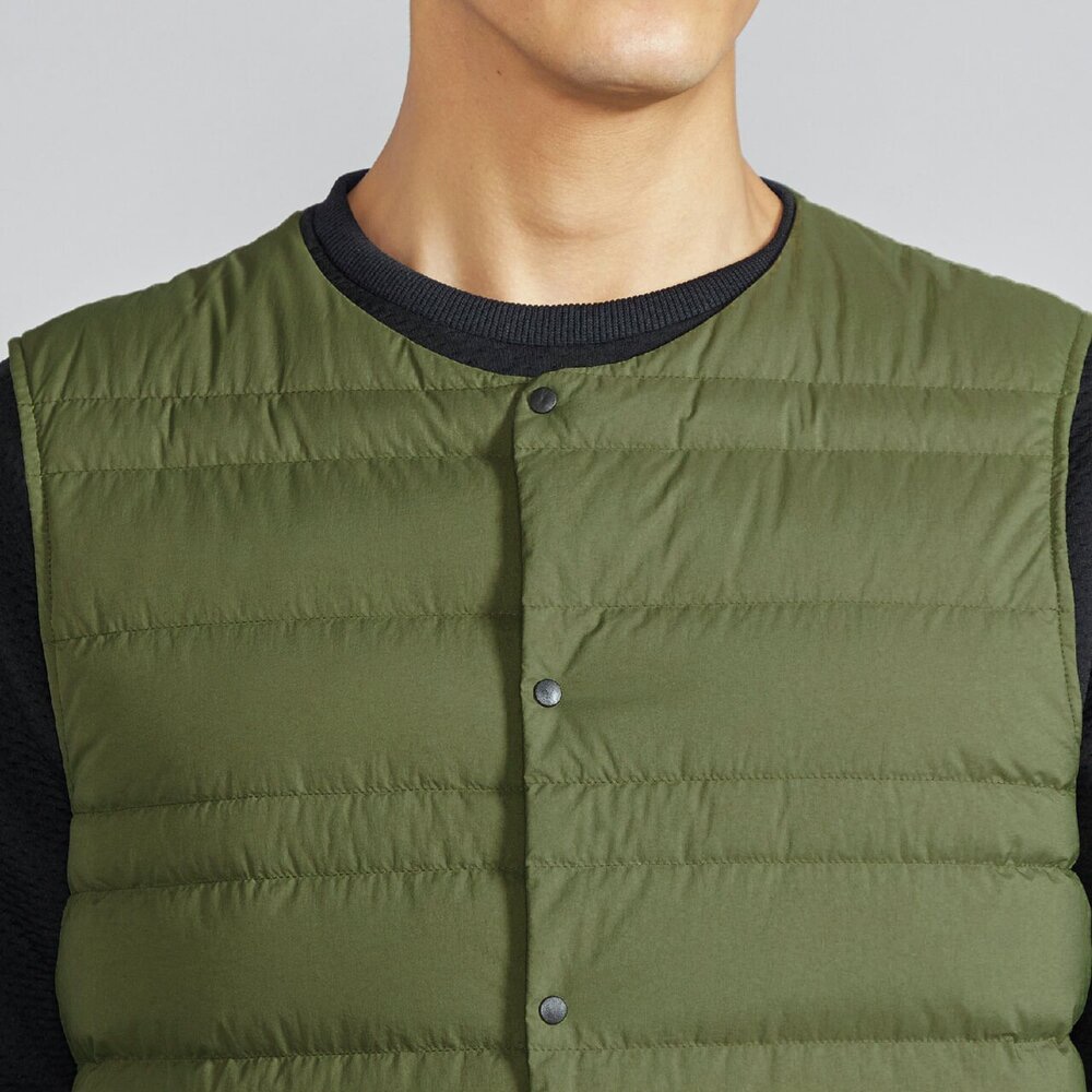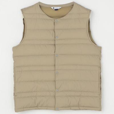 ノーカラーのベストは、秋口のアウターから冬はミドラーアイテムと活躍の幅が広いアイテムです。