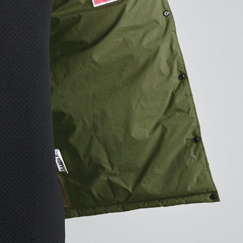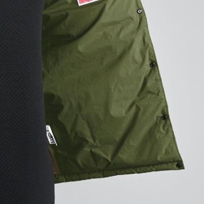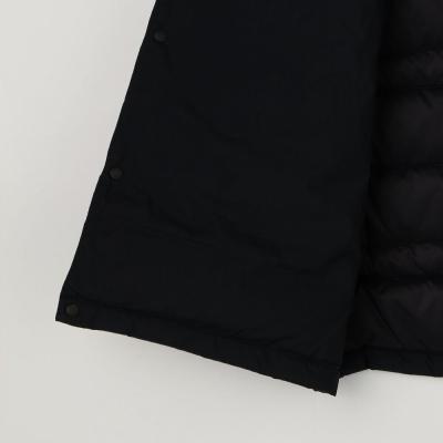 | 素材 | 表地:ナイロン100% 裏地:ナイロン100% 中綿:ダウン90%、フェザー10% 後身頃芯地:合成繊維(ブレスサーモ)65%、ナイロン35% |
