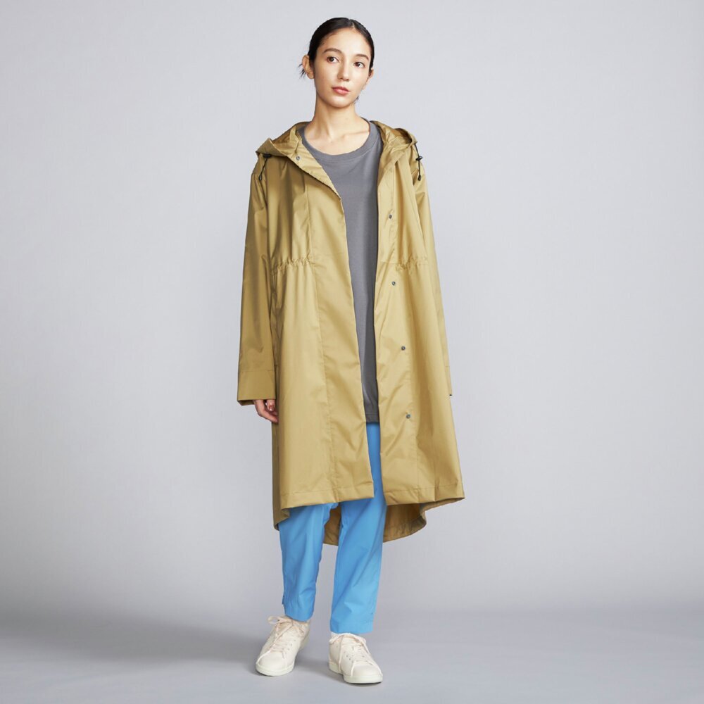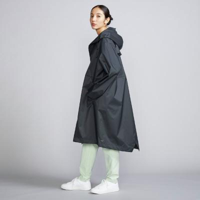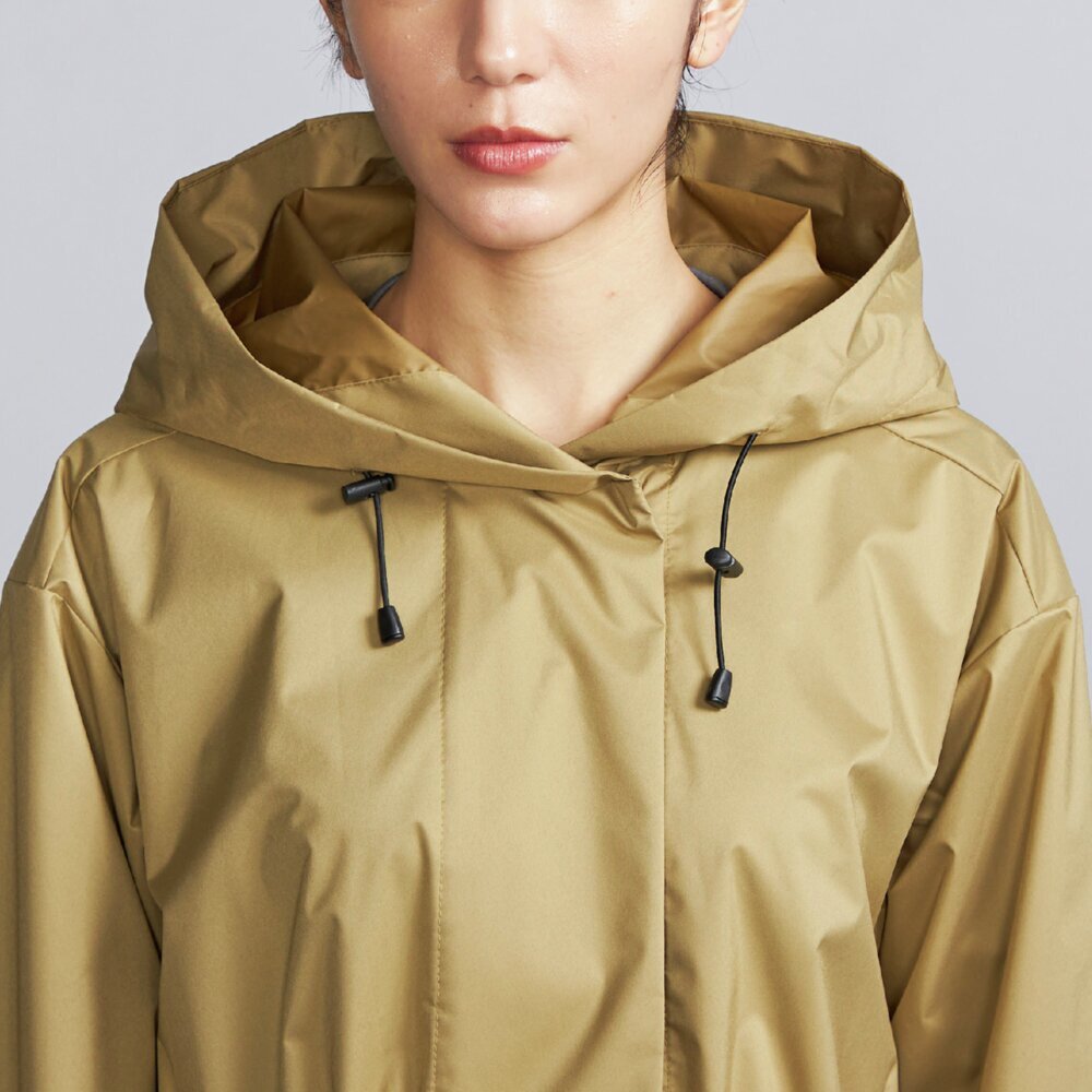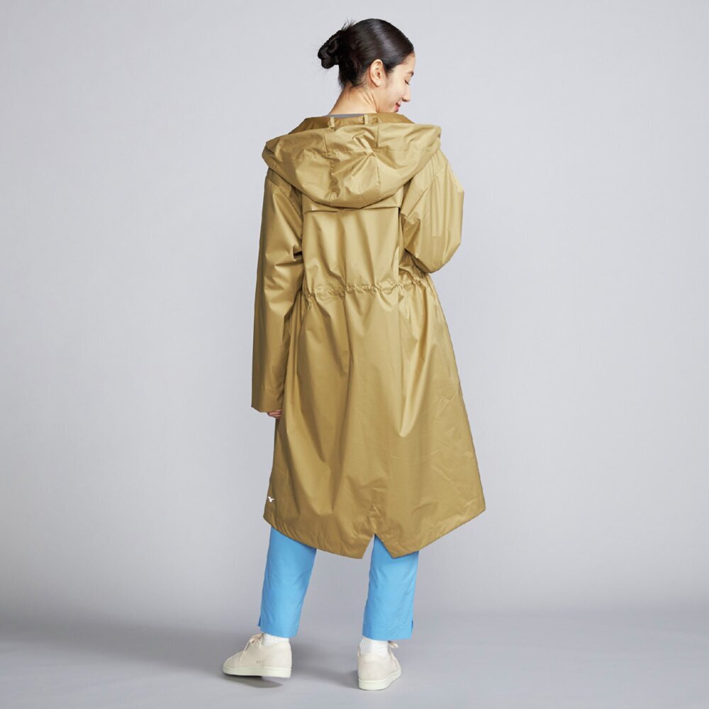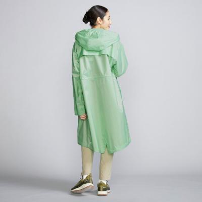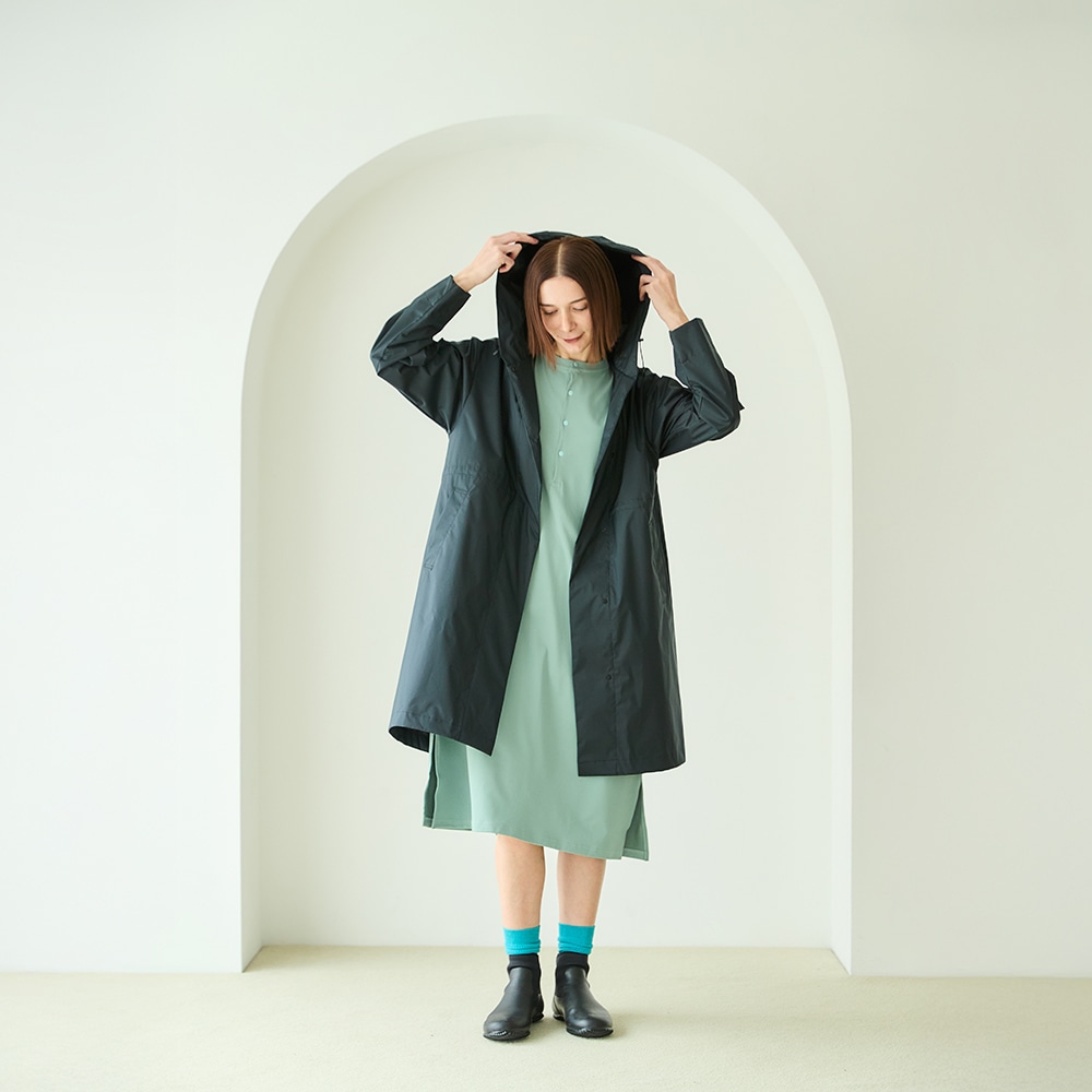 ■耐水性、透湿性に優れたアクアブロックを使用した、雨の日以外でも着用できるベーシックなデザインのレインコート。