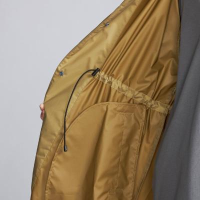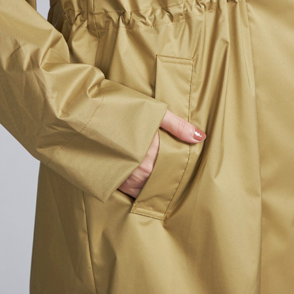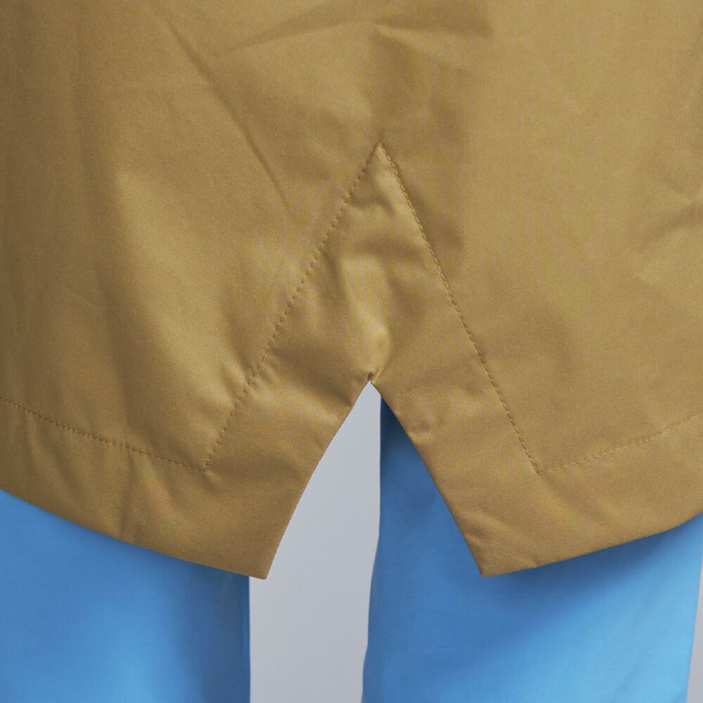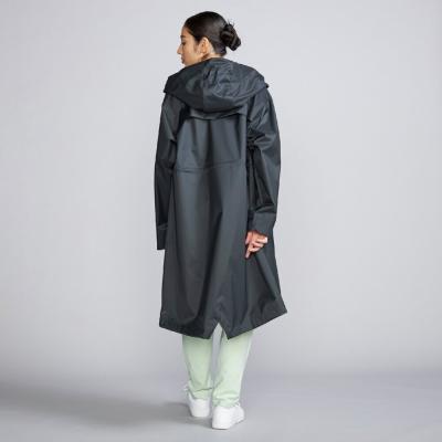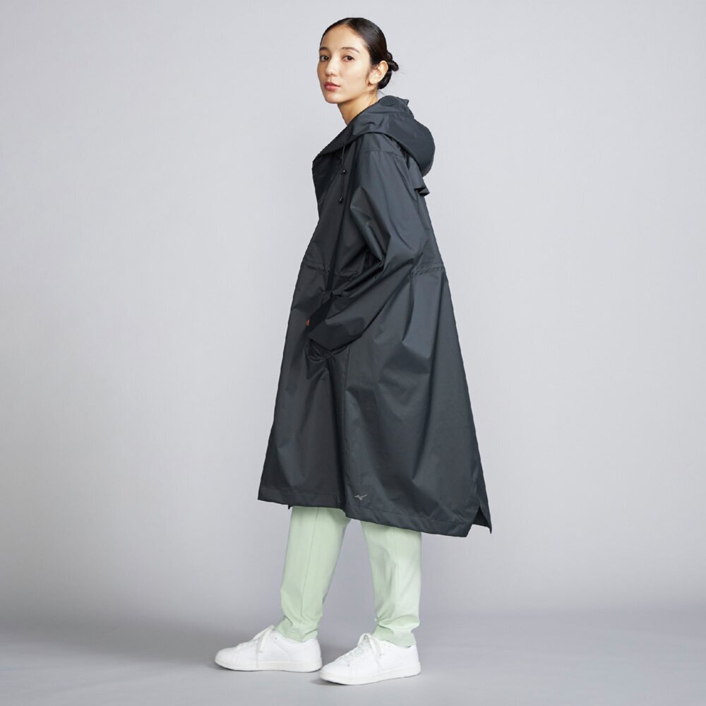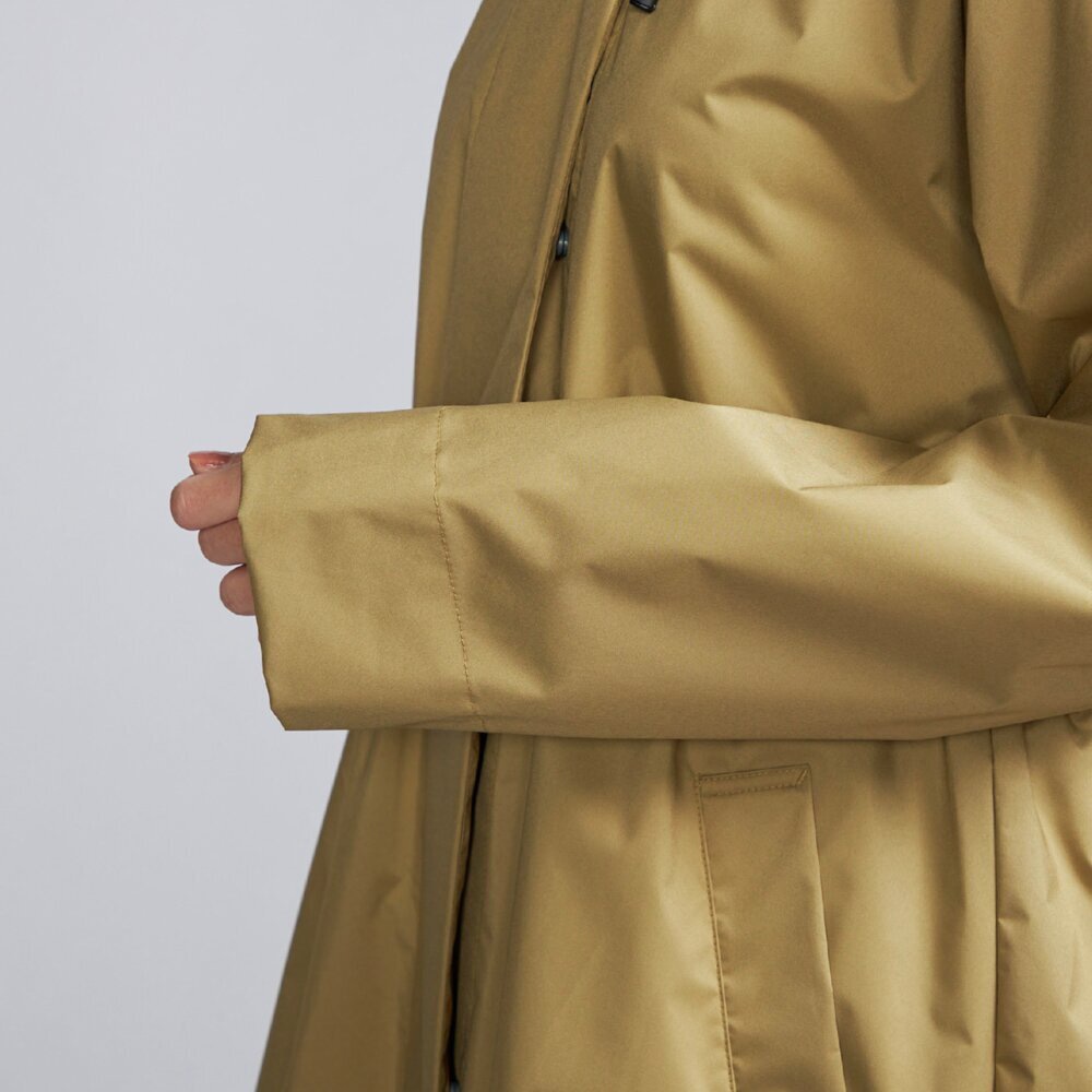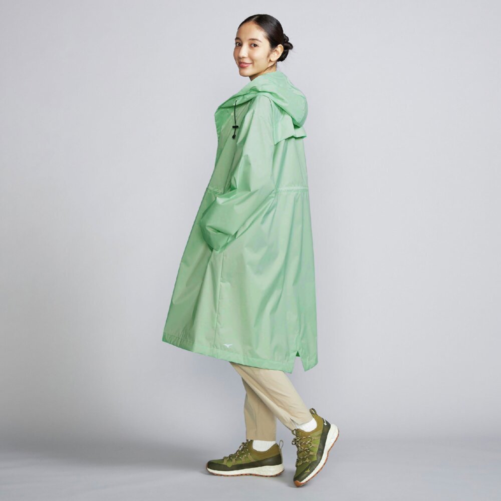 ■耐水性、透湿性に優れたアクアブロックを使用した、雨の日以外でも着用できるベーシックなデザインのレインコート。