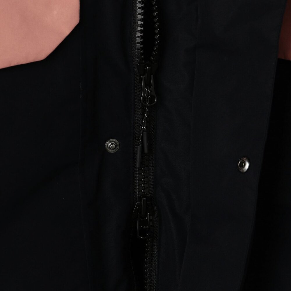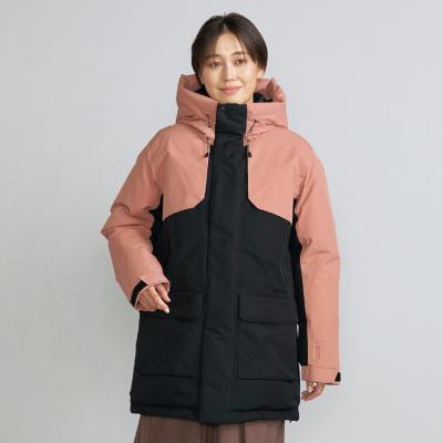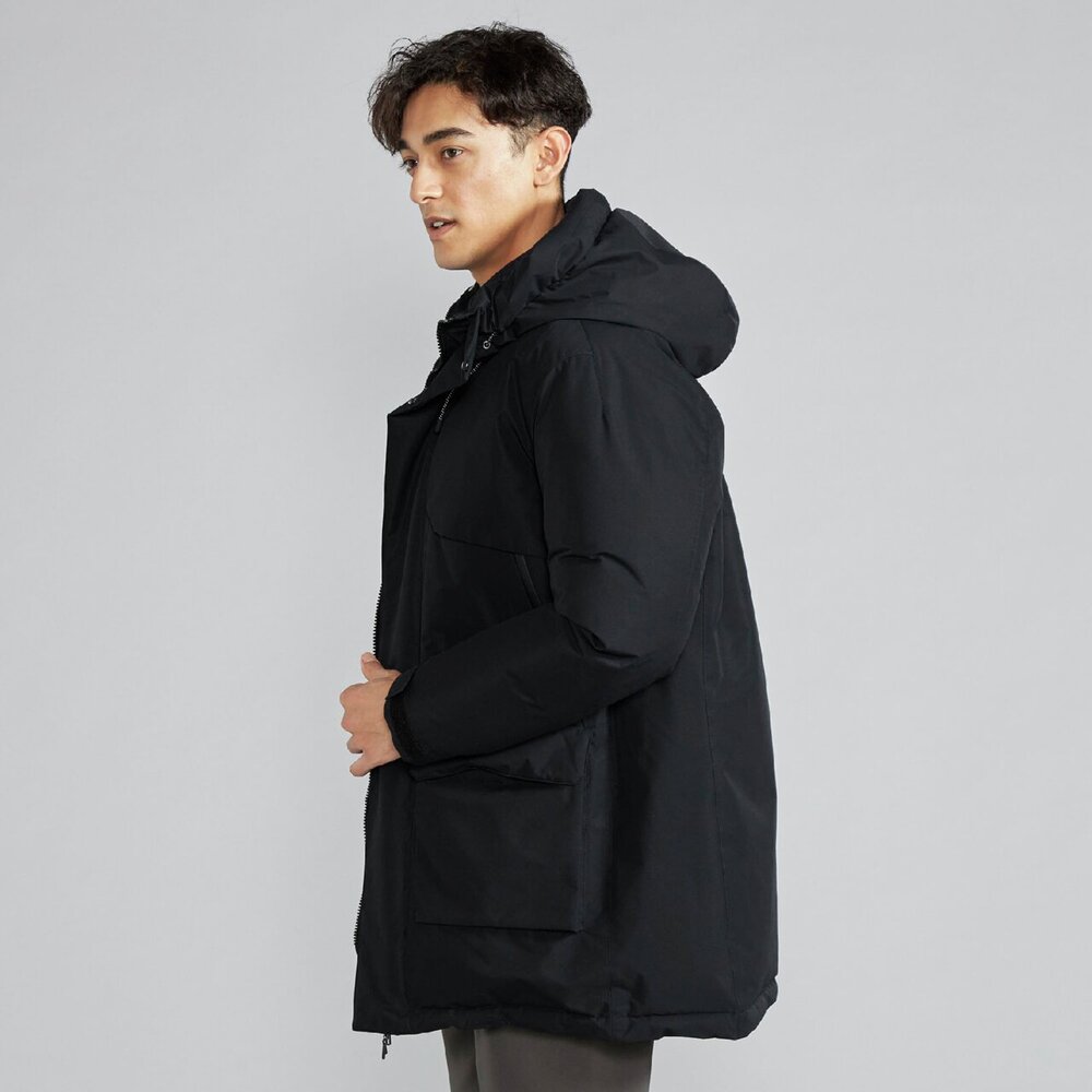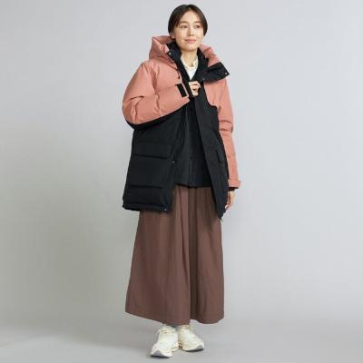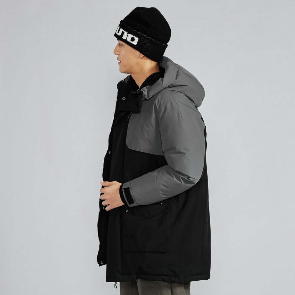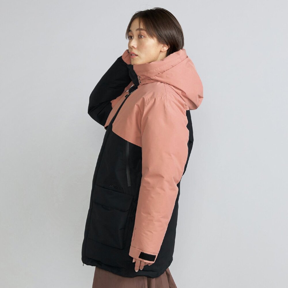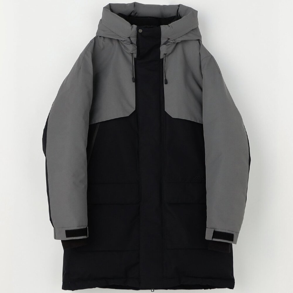 | 素材 | 表地:ポリエステル100% 裏地、本体:ナイロン100% メッシュ部:ポリエステル100% 中綿、本体:ダウン90%、フェザー10% 前立、ポケットフラップ、内衿:ポリエステル100% インナーカフス部:ポリエステル100% 後身頃上部芯地:合成繊維(ブレスサーモ)65%、ナイロン35% |