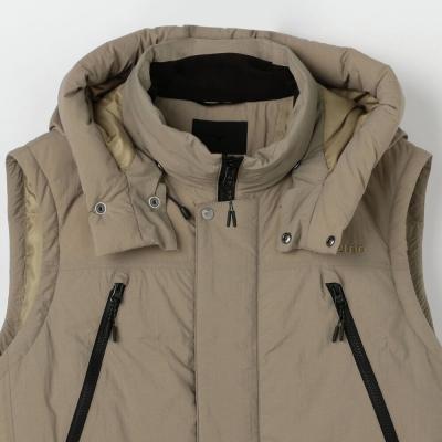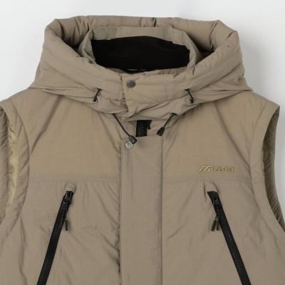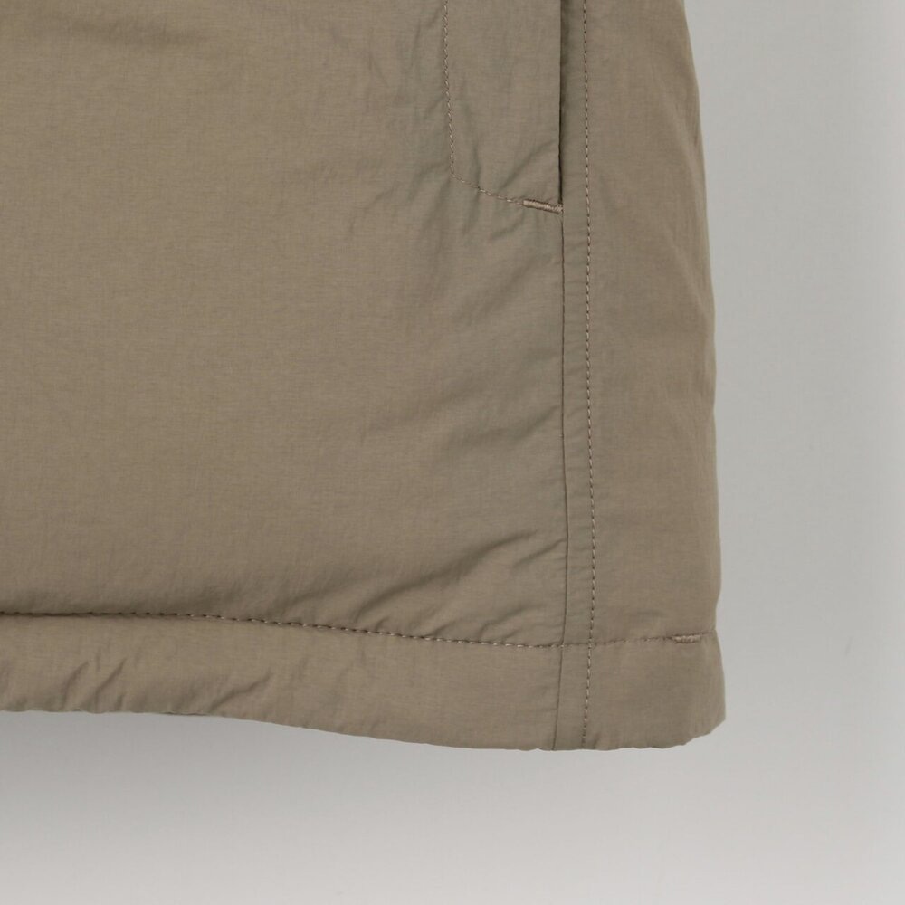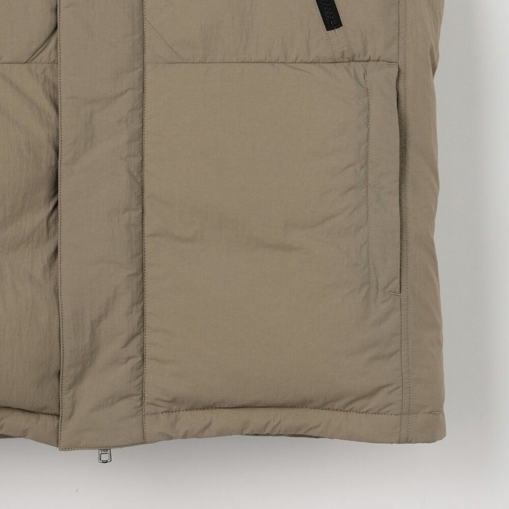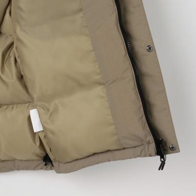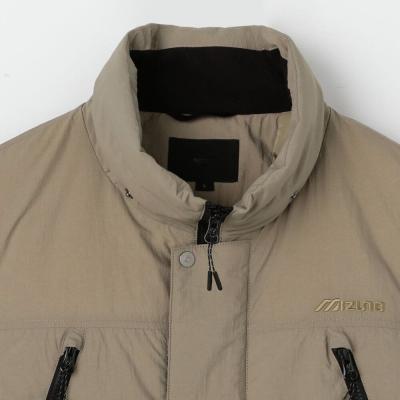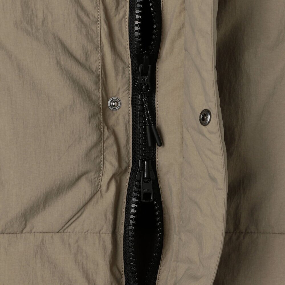 | 素材 | 表地 本体:ナイロン100% 内衿:ポリエステル100% 裏地:ポリエステル100% 中綿 本体:ダウン90%、フェザー10% 前立:ポリエステル100% 身頃上部芯地:合成繊維(ブレスサーモ)65%、ナイロン35% |