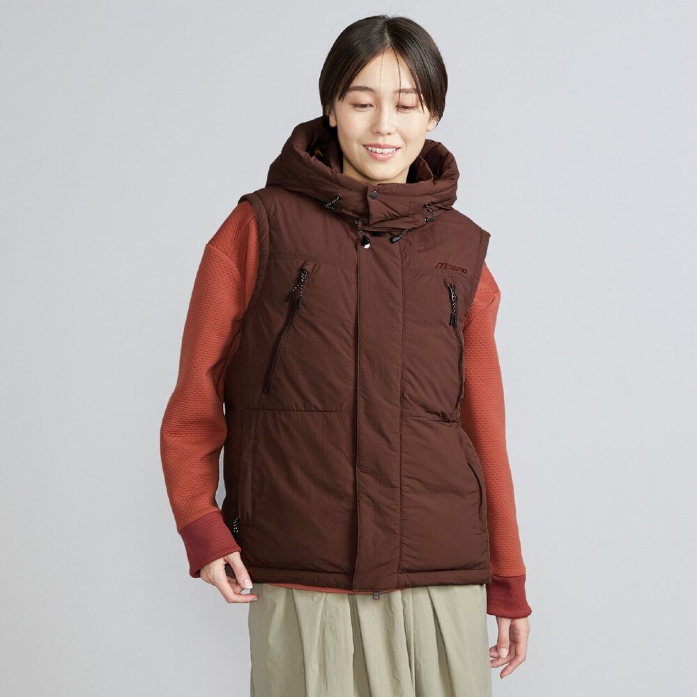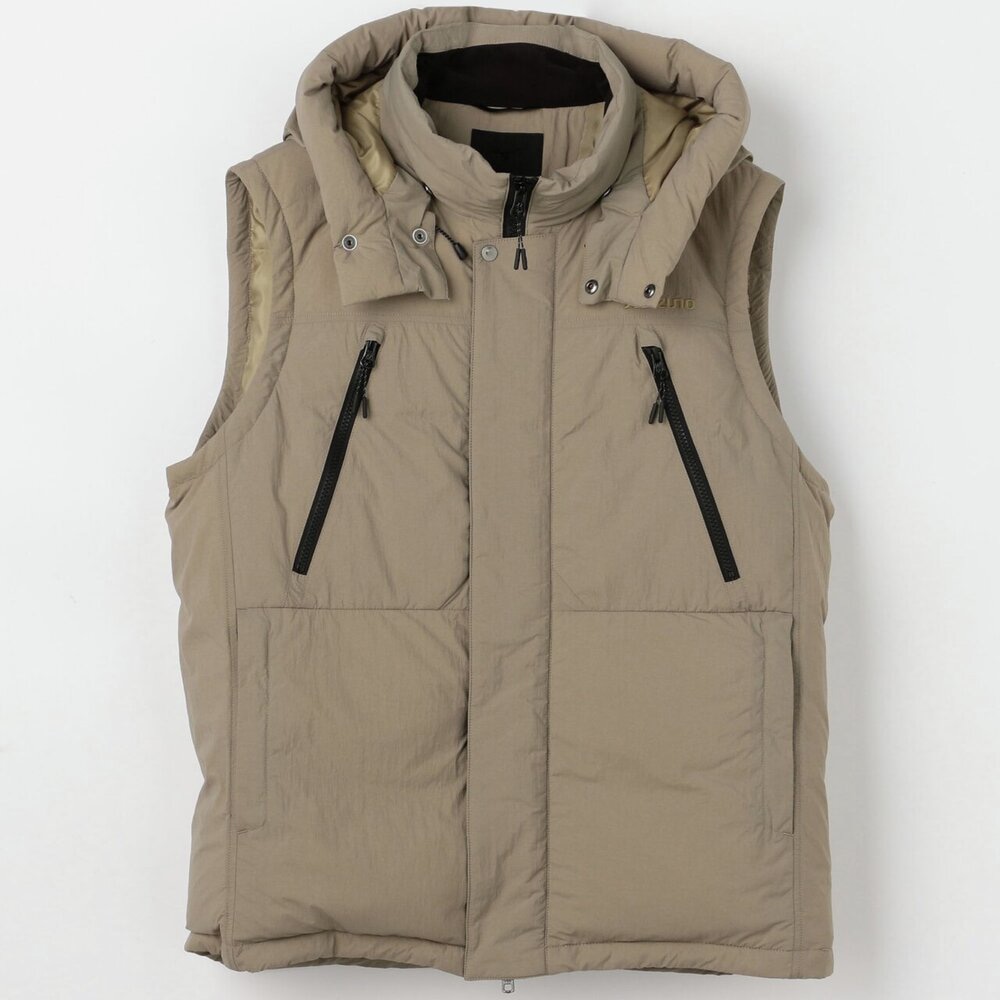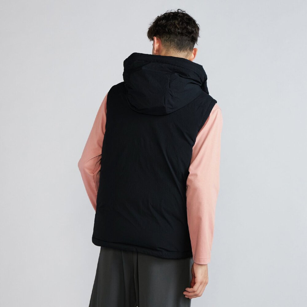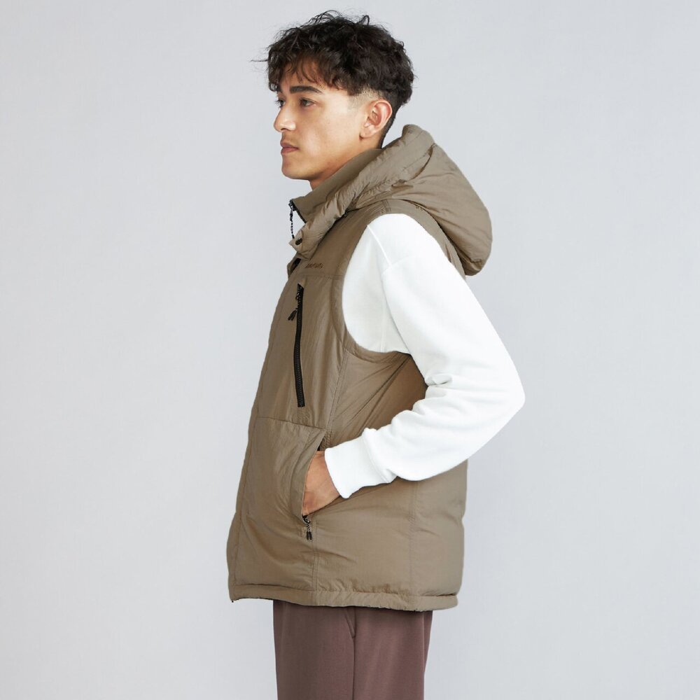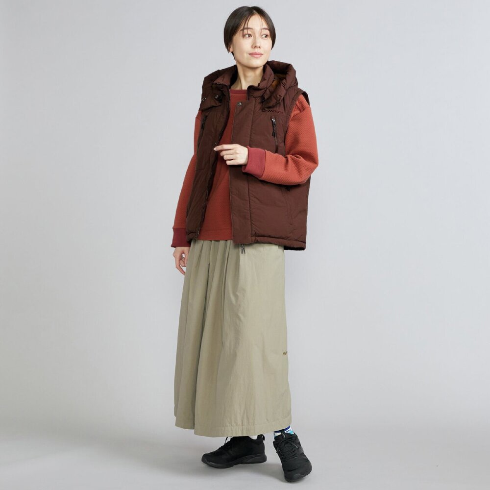 ダウンベストは、中に着るアイテムで気温に合わせたスタイリングができるので、暖冬にも強いワードローブになります。