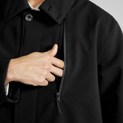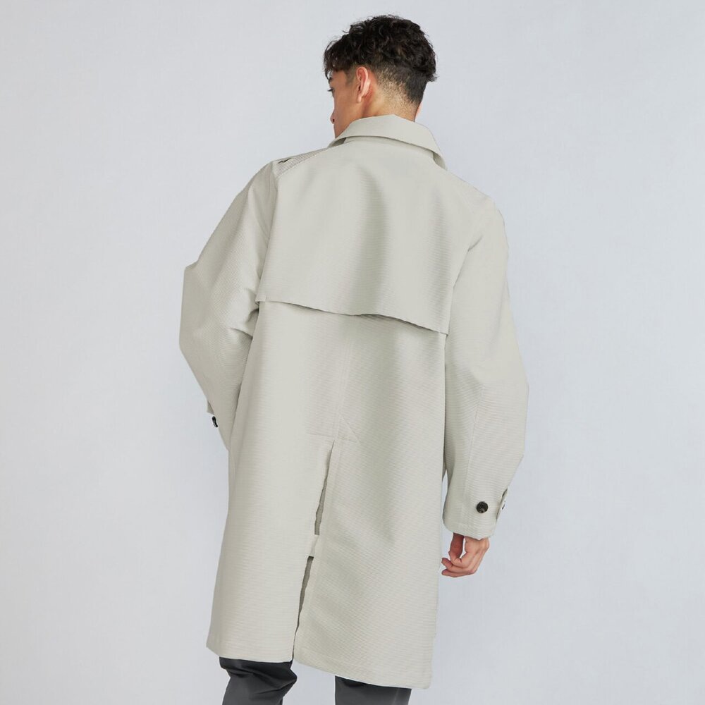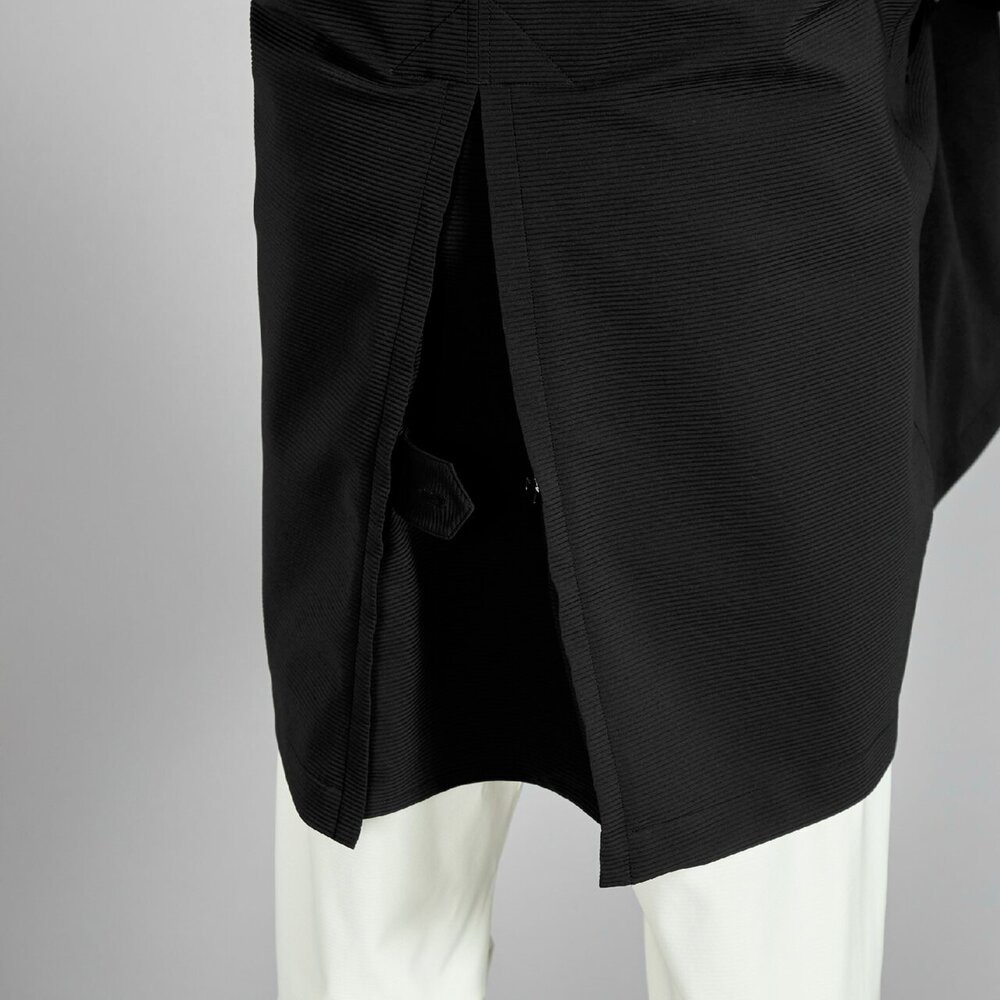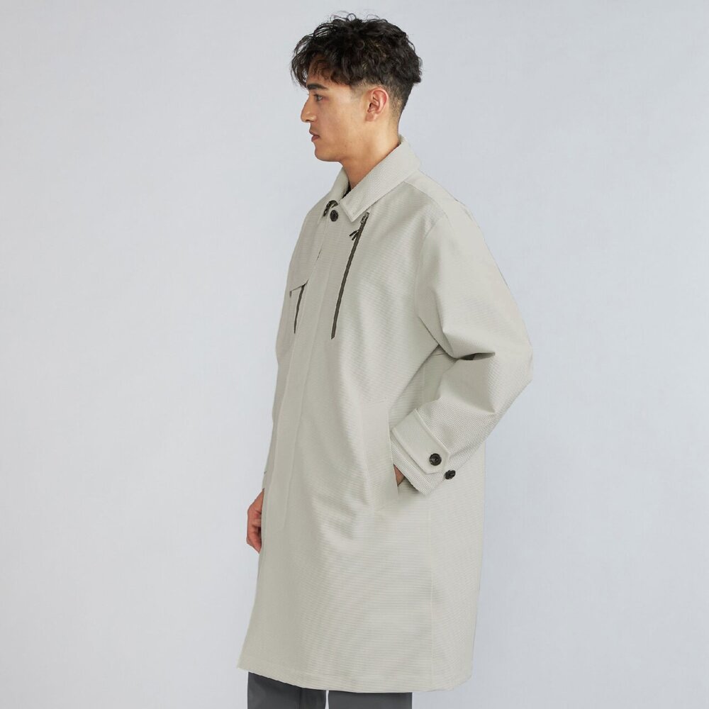 スキーウエアで使っている透湿防水性のあるストレッチ素材を使用した、テッキーなデザインのライフスタイル向けステンカラーコート。雨や雪の日にも活躍するアイテムです。