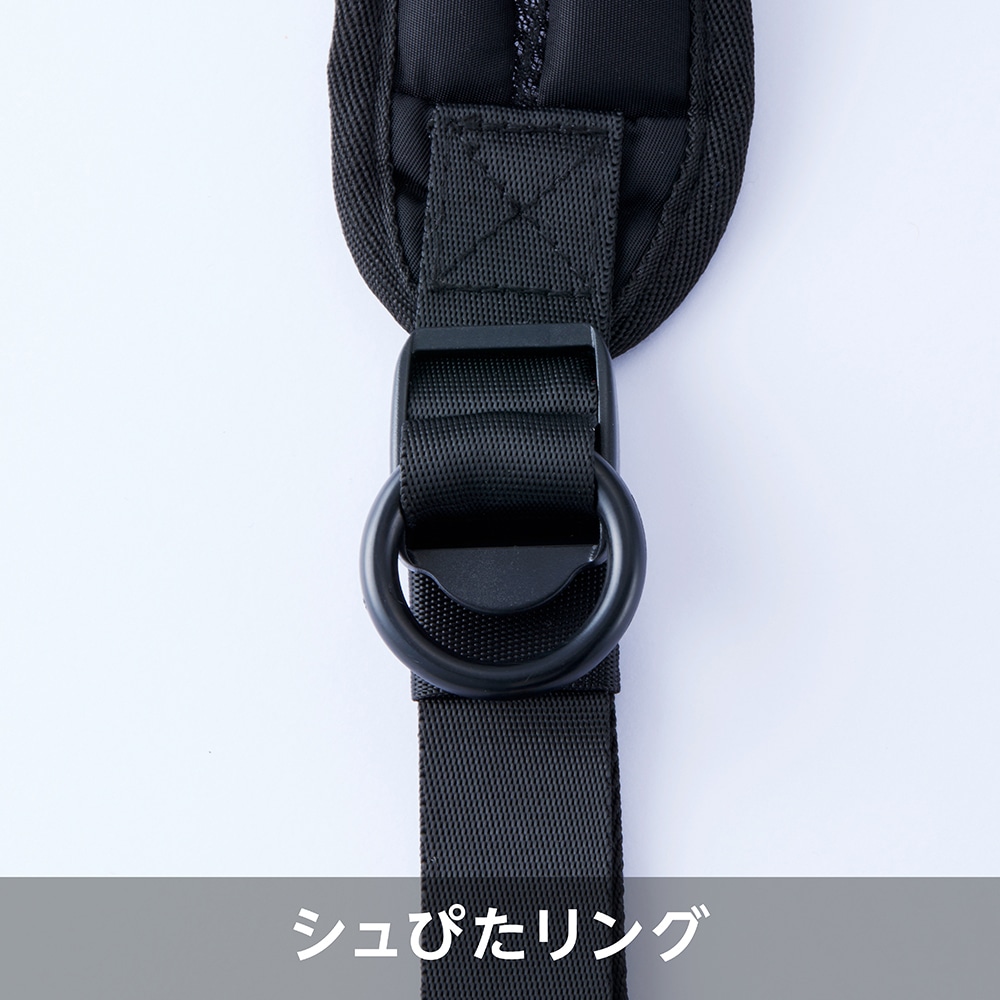 ショルダーベルトの分割設計で荷重を分散。
