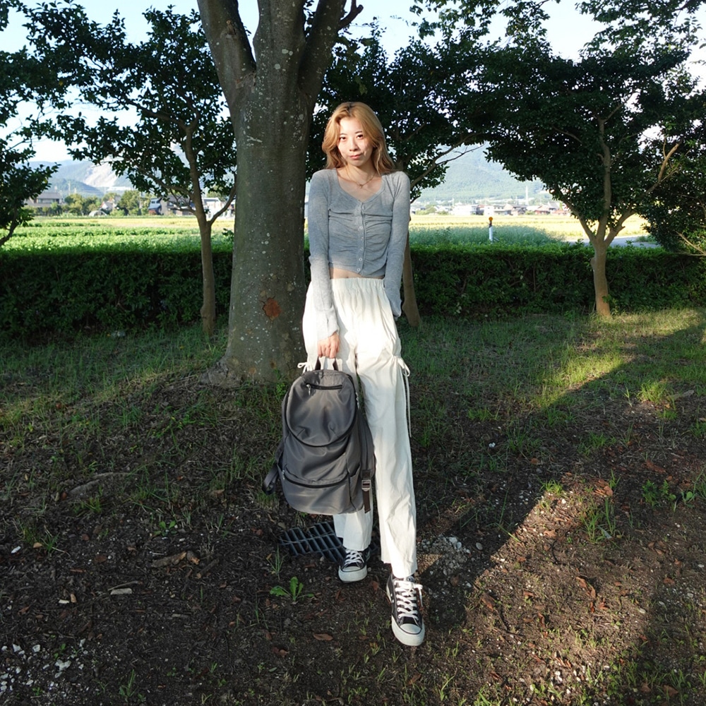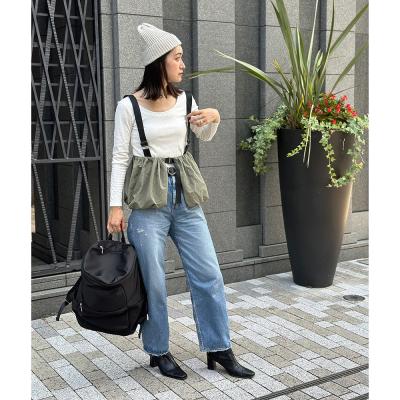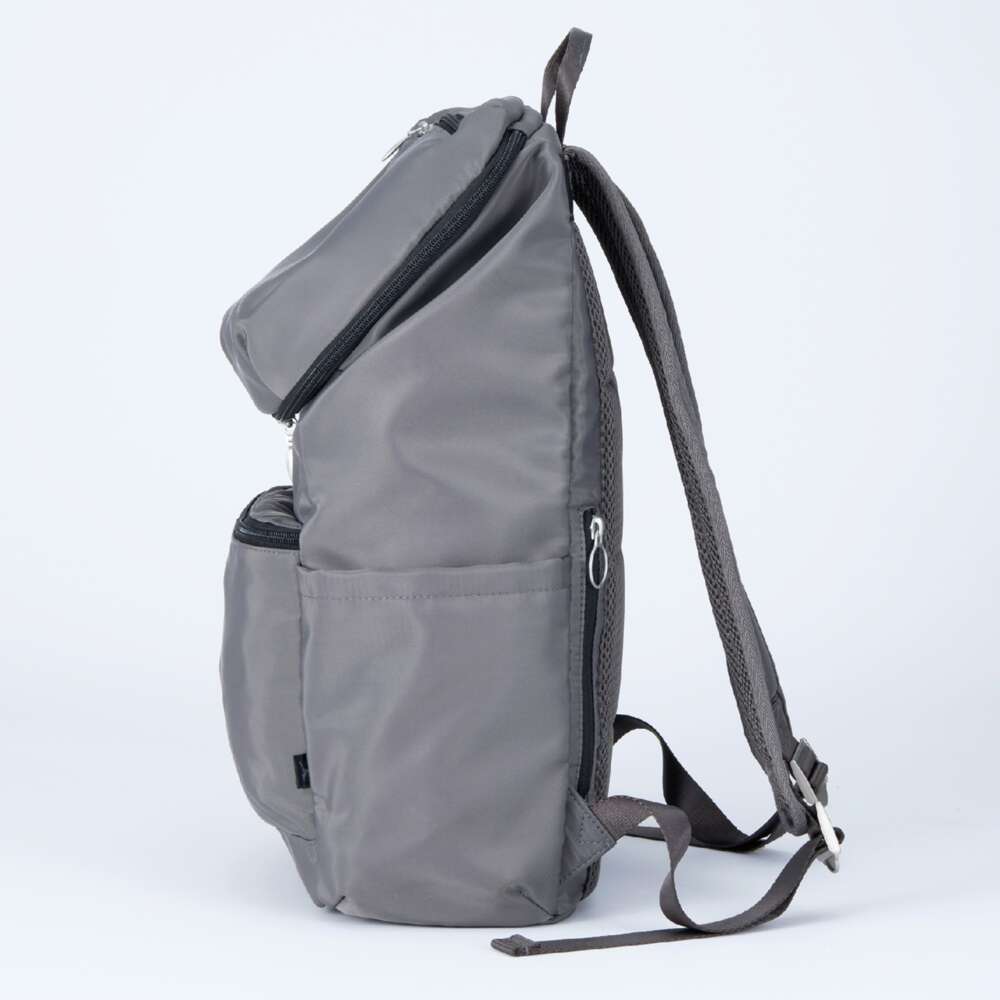 - 底面両サイドにゴムポケットがあり、水筒や傘など倒れやすいアイテムを立てて入れられます。