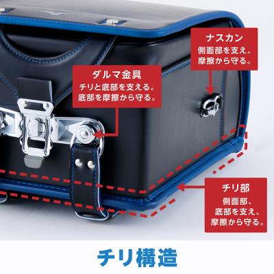 ランドセルのふちが車などのライトに反射してピカッと光り、視認しやすい仕様です。暗い夜道や雨の日の登下校時の心強いボディーガードとして安全・安心をサポートします。