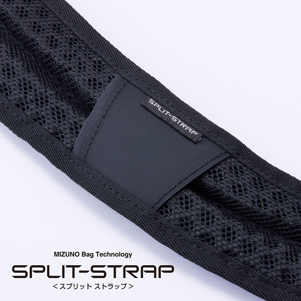 肩ストラップのクッションを左右に分割し、体への荷重を分散。肩の複雑な動きにフィットさせやすい設定