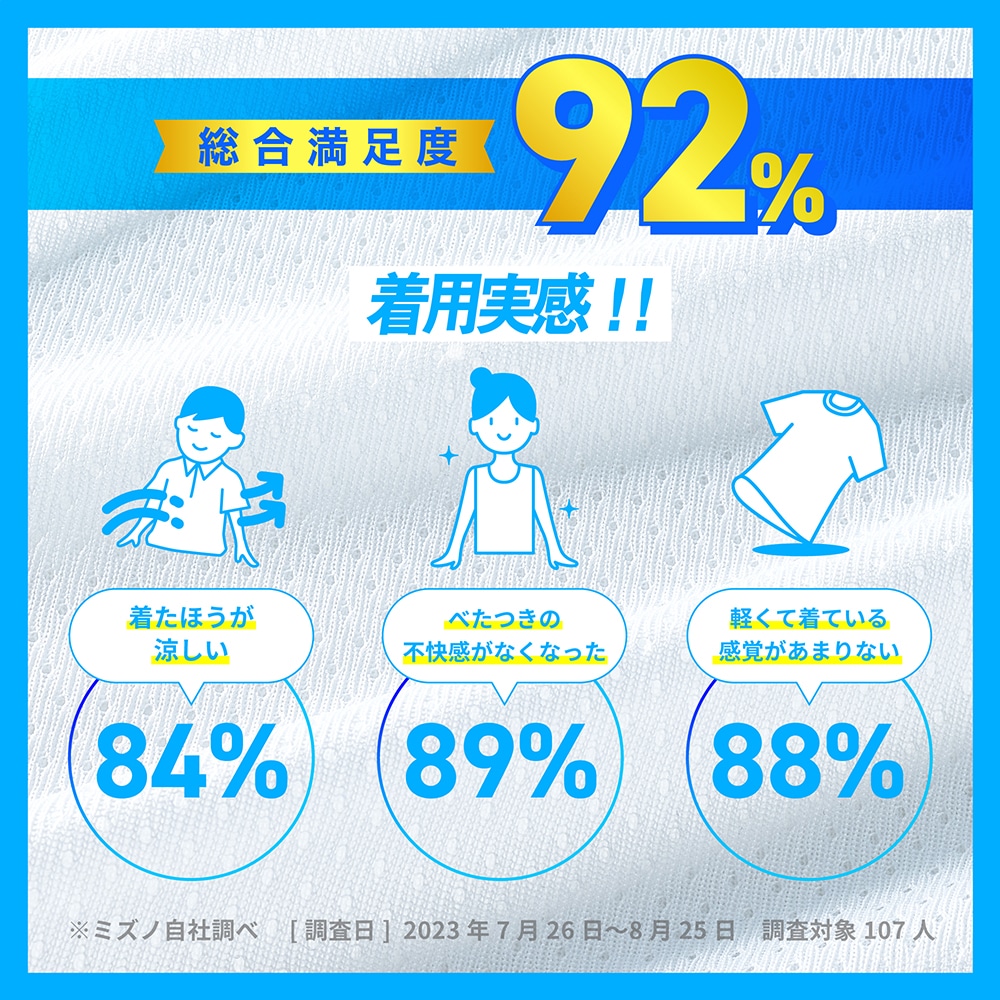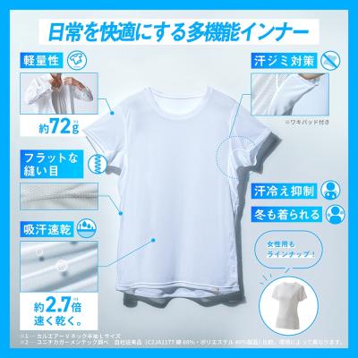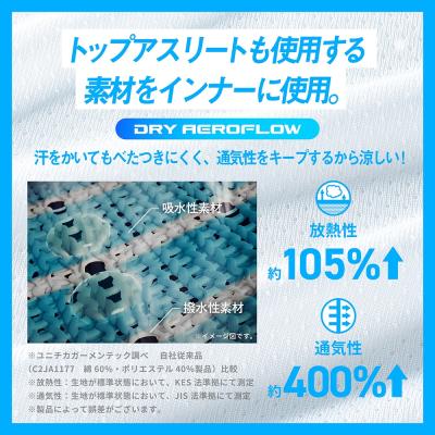 ■べたつき・汗ジミ防止、吸汗速乾機能で汗の不快を一枚で吹き飛ばす。