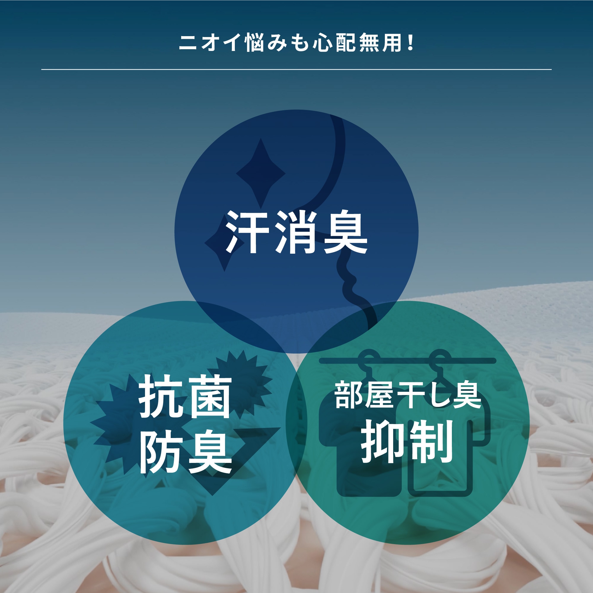 抗菌防臭性に優れていることを示し、菌の増殖と嫌な臭いを抑制します。