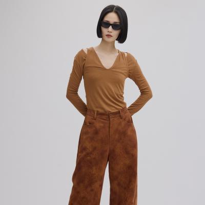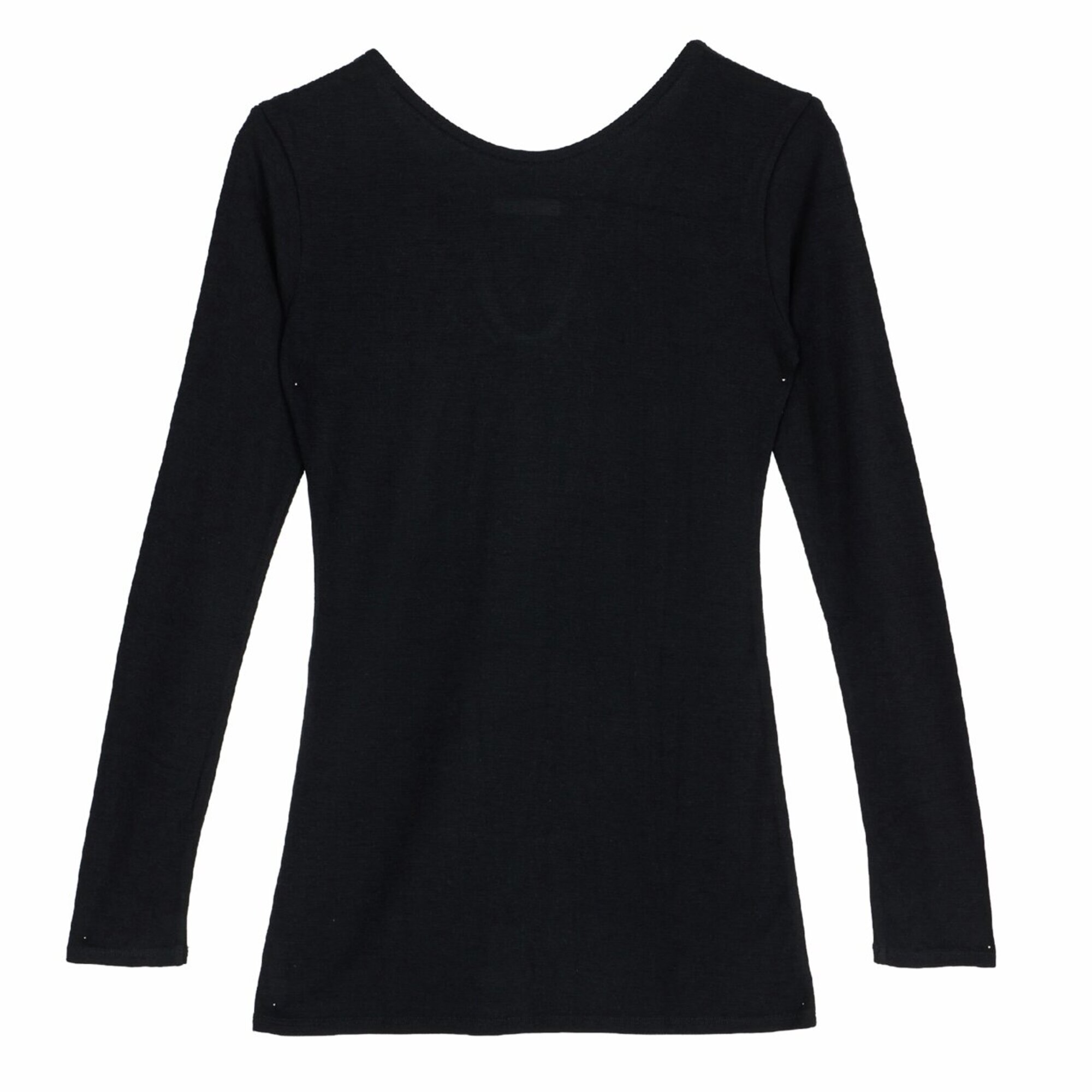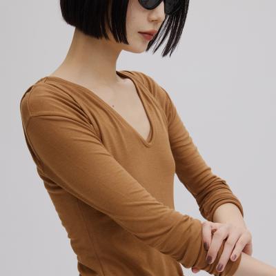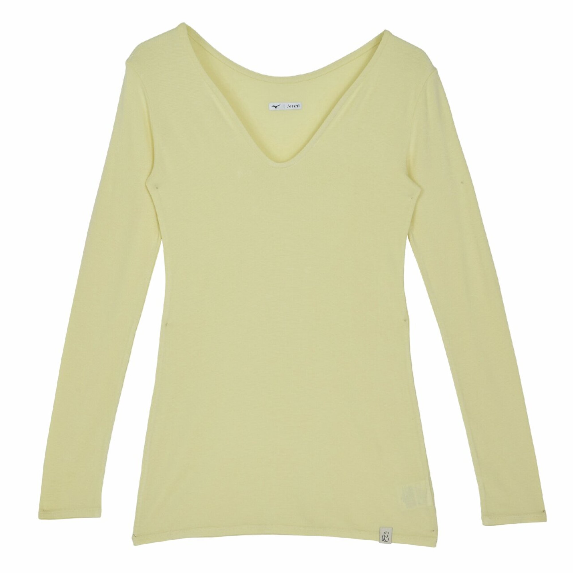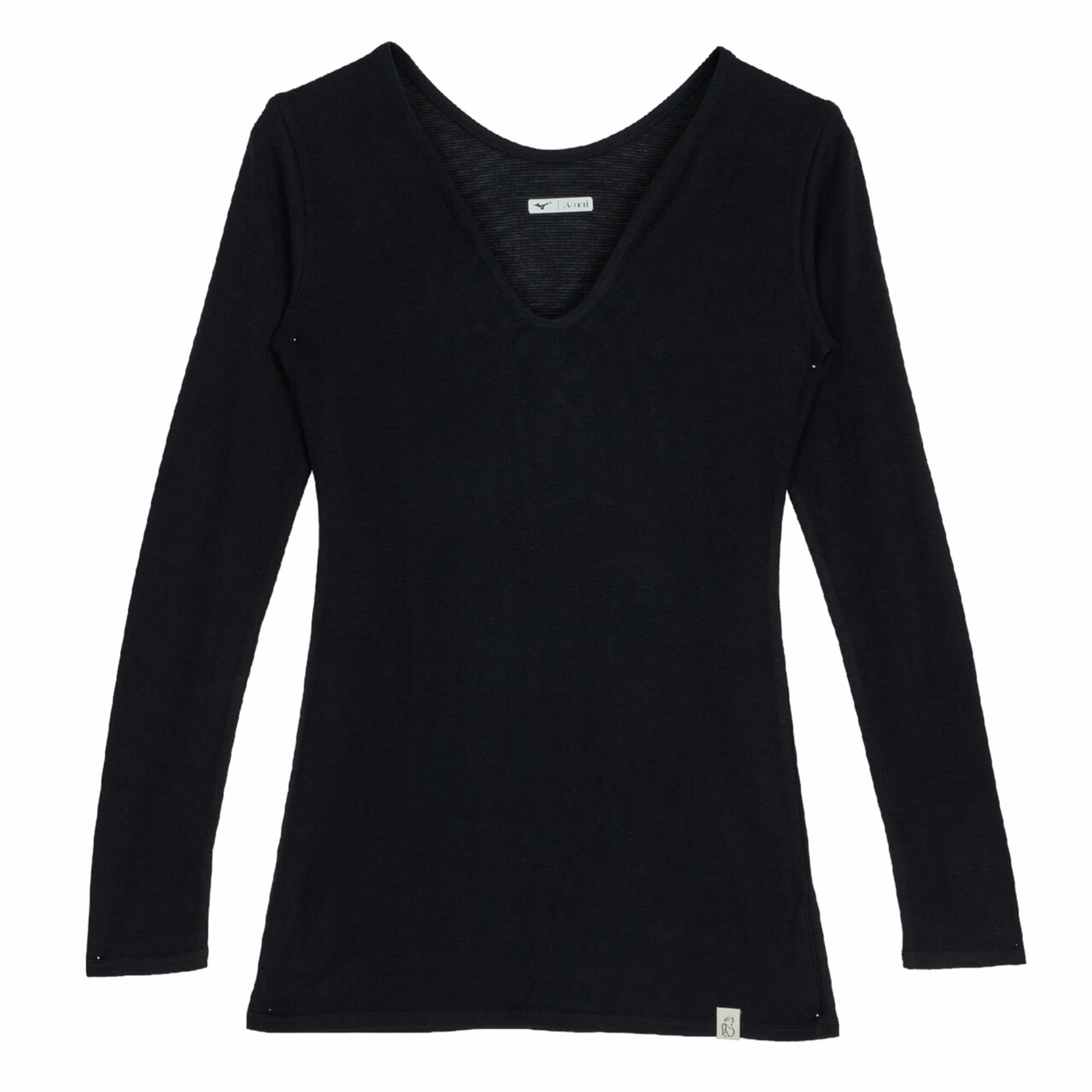 ■柔らかいウェーブのVネックが特徴的なロングスリーブインナー。