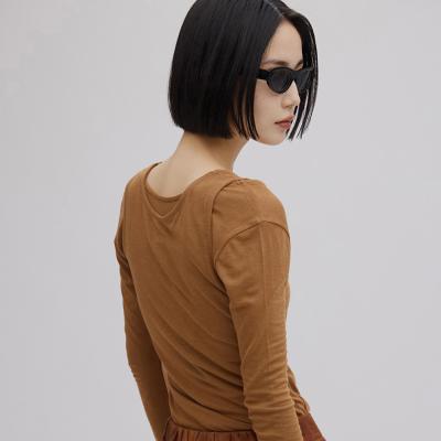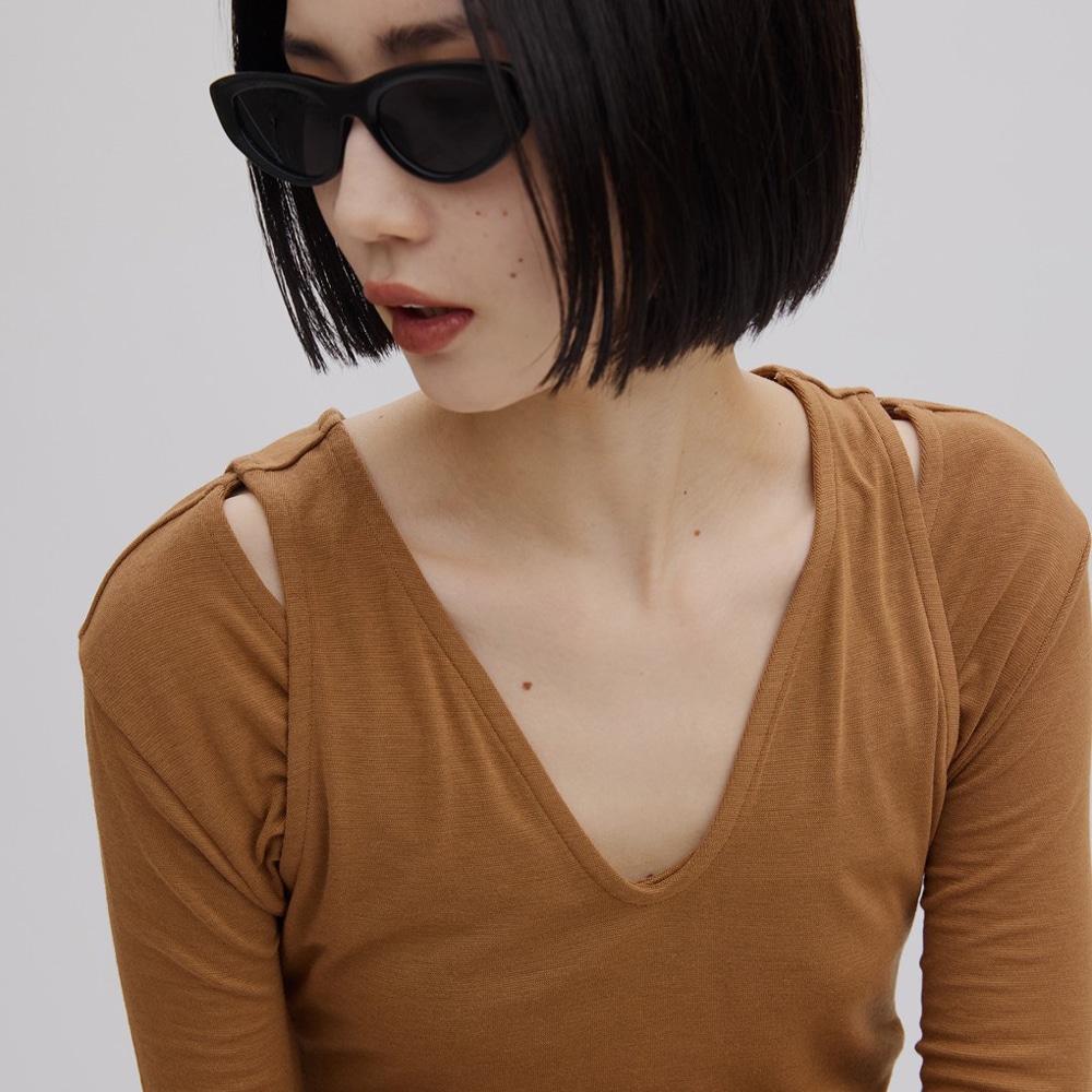 ■襟ぐりを広めに設定することで、アウターの邪魔をしないすっきりとしたインナー。