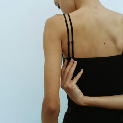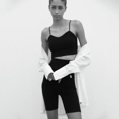 ■コンパクトなクロップド丈で着回し力に長けたカップ付きインナー。