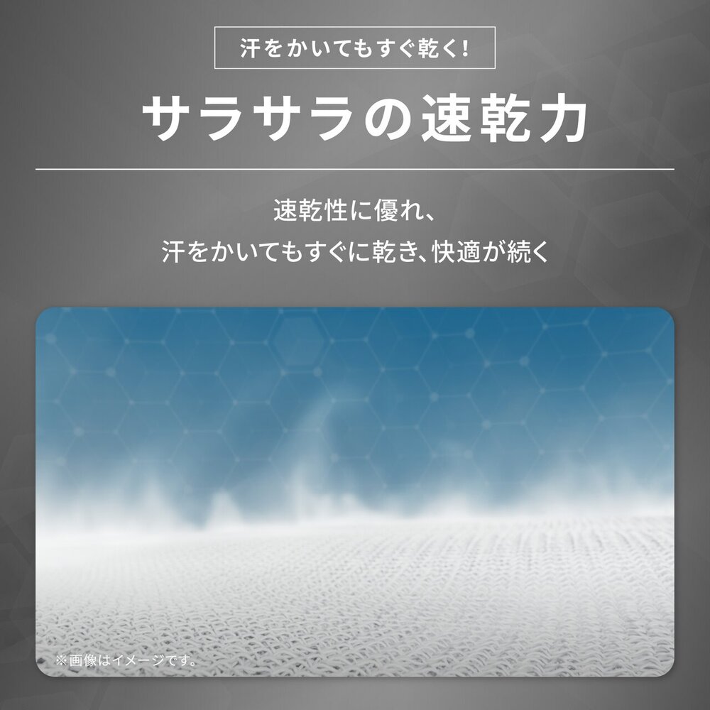 汗を素早く吸収・拡散する吸汗速乾機能と、気になるイヤなニオイを素早く消臭・100回洗濯後も消臭力が持続する消臭力を兼ね備えたインナーシャツです。