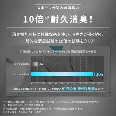 ■一般消臭試験の10倍の基準をクリア、消臭効果が持続します。(100回洗濯後も消臭効果が持続)