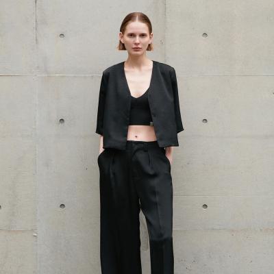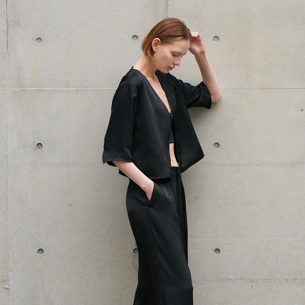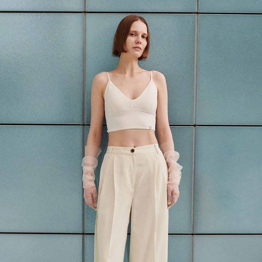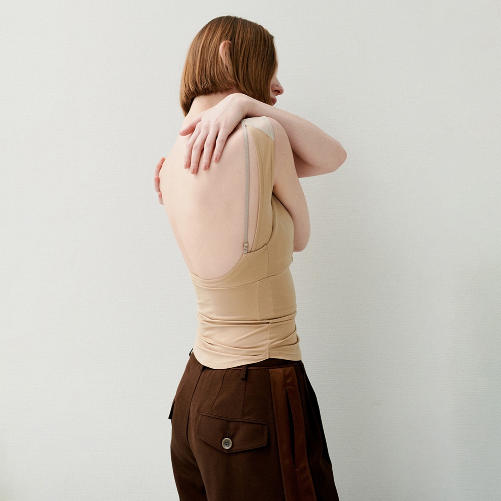 深めに設定したネックラインで、合わせるトップスを選ばず着用できる一着。