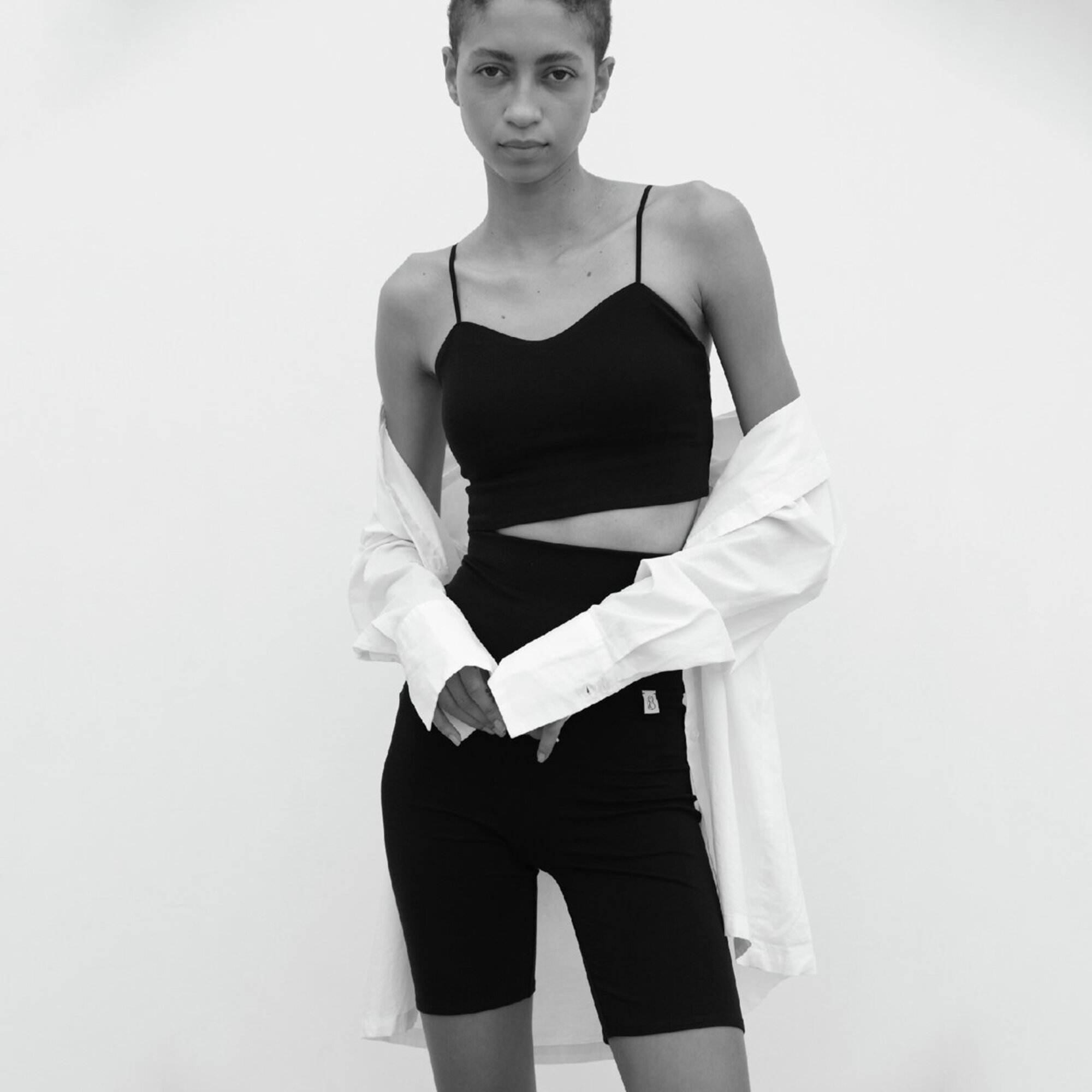 ■バイカーパンツのようにチュニックと合わせて裾を見せるスタイルもおすすめ。